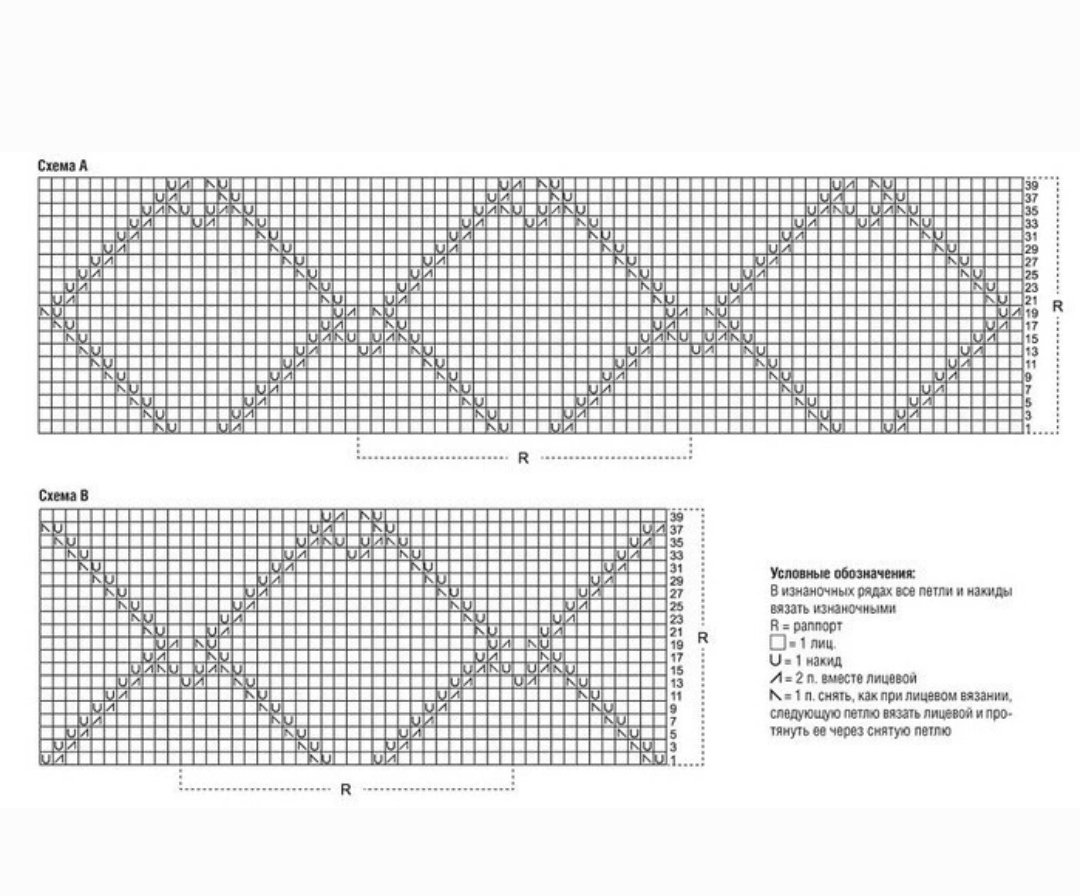 Ажурный узор «Ромбы»: вязать согласно счетным схемам А и В.