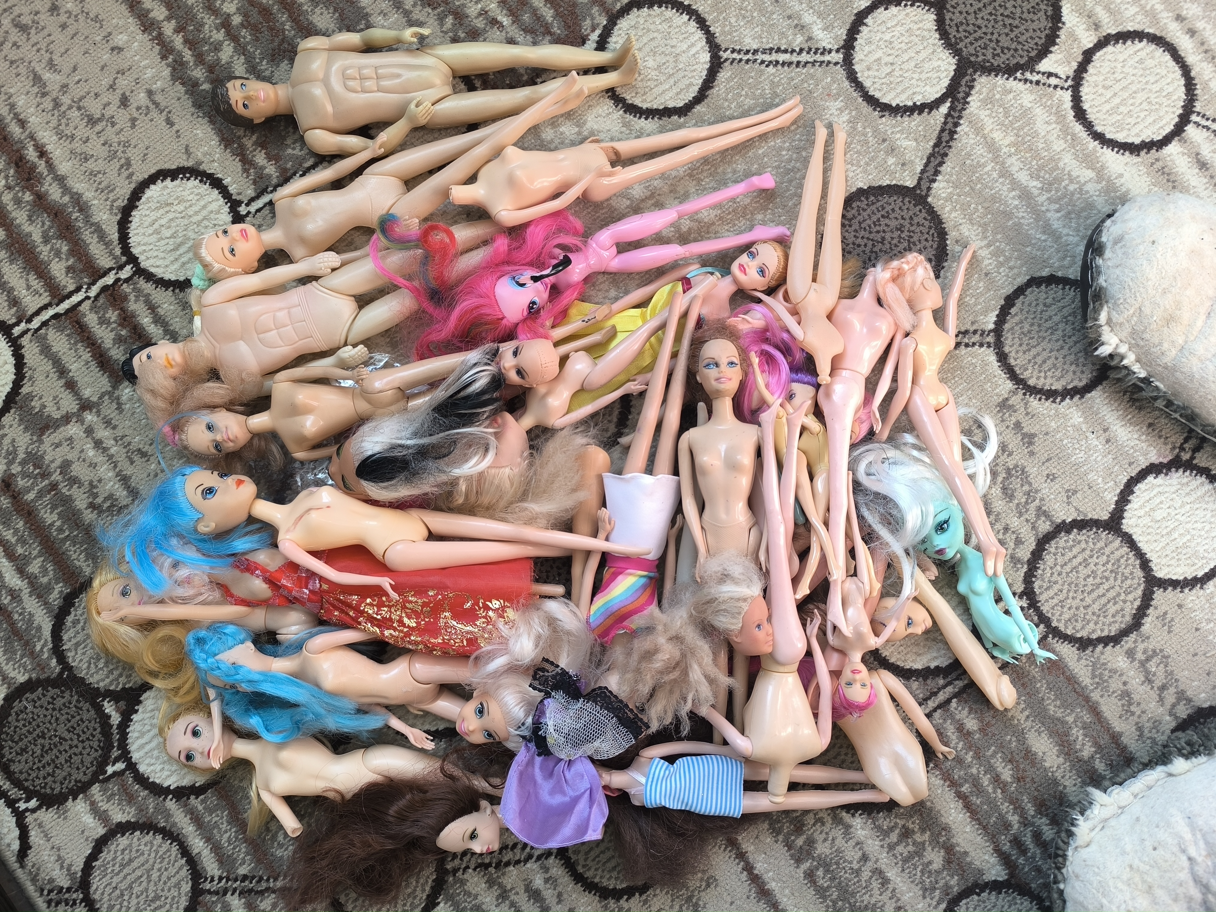 Подарю за пересыл мешок кукол: барбиобразные и малышки- все с дефектами, может кому пригодится для поделок и переделок.около 2-х кг по весу.