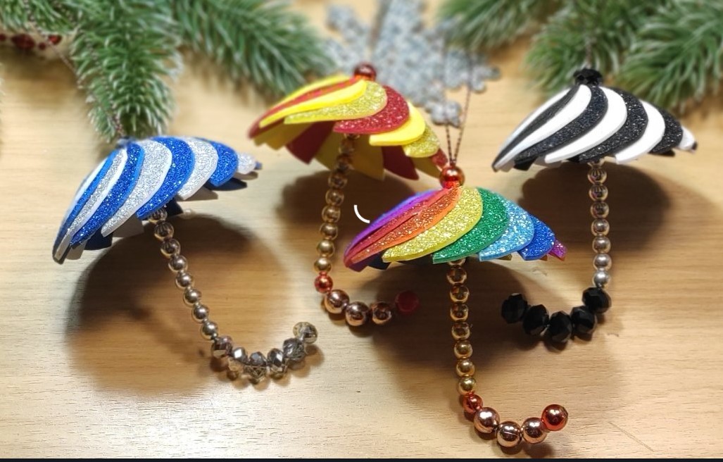 Ёлочные игрушки «зонтики» из фоамирана. Видео МК