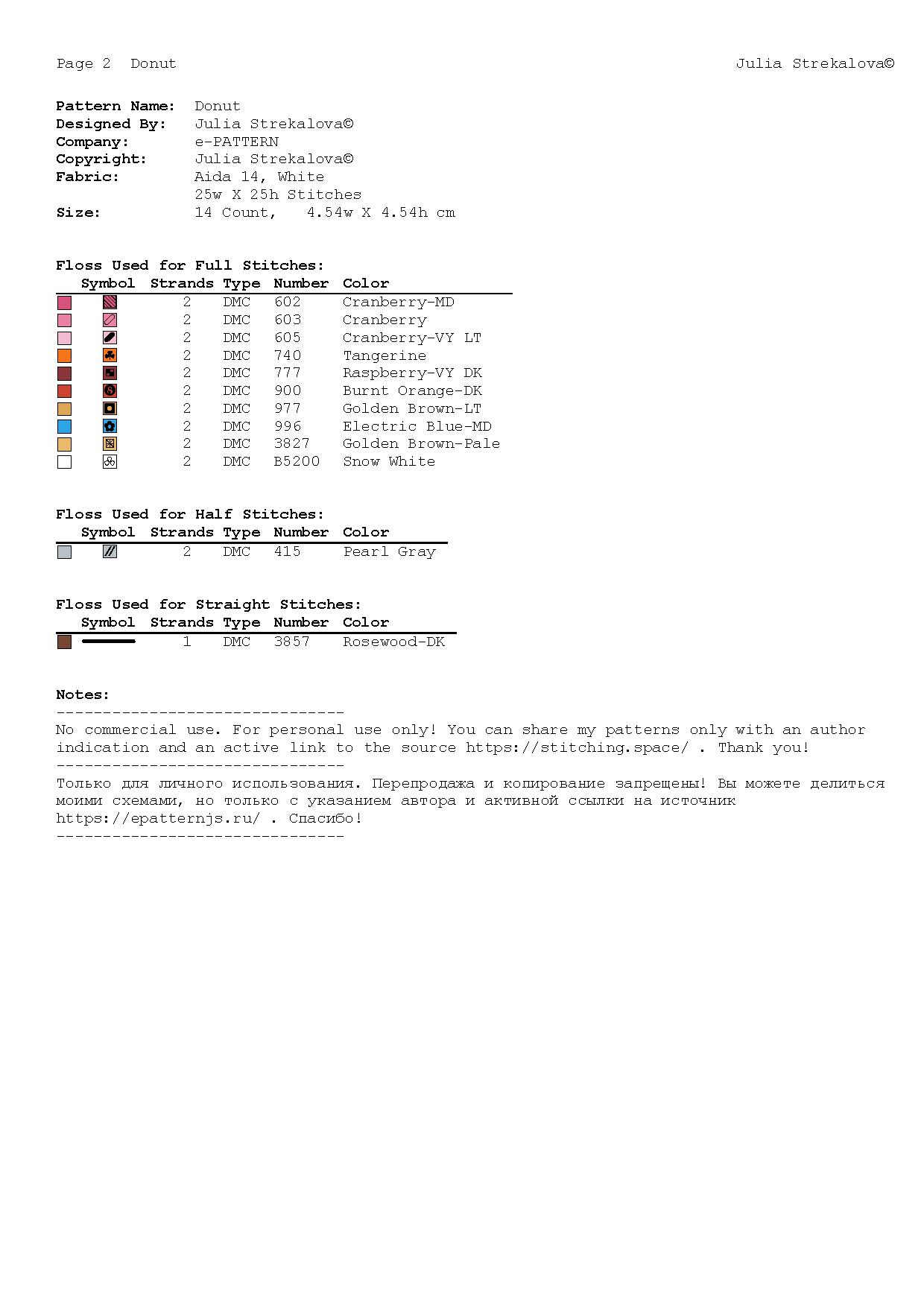 Авторская схема вышивки крестом “Пончик”. Дизайнер – Стрекалова Юлия.