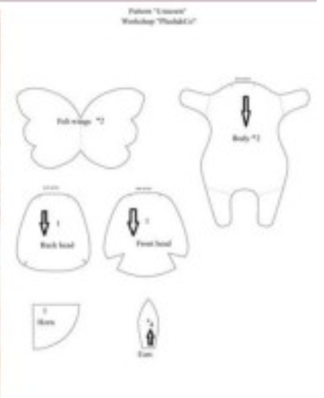 Сшила по выкройке из интернета, примитивная и шьётся легко. У Андрианы мягкие крылышки, рог из ракушки, покрашенной золотой акриловой краской, и цветочек из фетра с сердечком из полимерной глины.