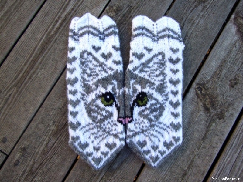 Жаккард.Варежки "Кот и сердечки" Схемы