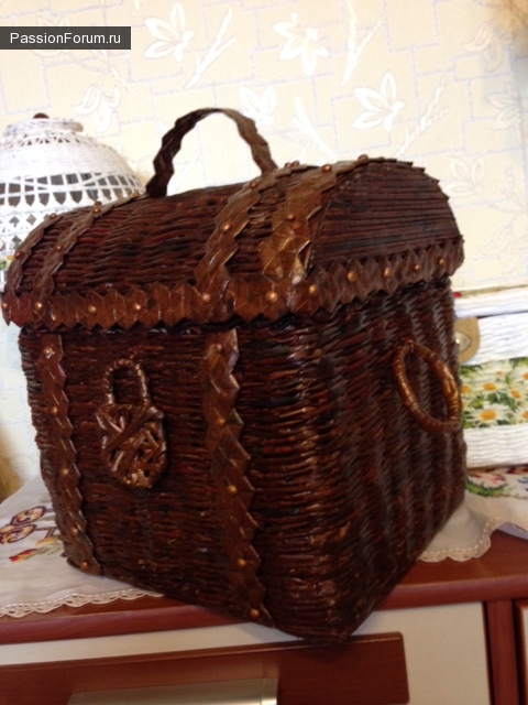 Затянули меня газетные трубочки… и вот очередное творение — сундучок 30х30х25 см.