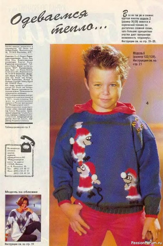 Журнал Sabrina - самый популярный в Европе журнал по вязанию. Все модели - женские, мужские, детские - всегда на пике моды, подходят для людей любого возраста и на все случаи жизни. В каждом номере более 30 моделей с инструкциями, схемами и выкройками. Широко представлена молодежная тема, отдельная тема журнала - экстравагантные модели для тех, кто это любит. В каждом номере наряду с моделями, связанными на спицах, представлены и вещи, связанные крючком