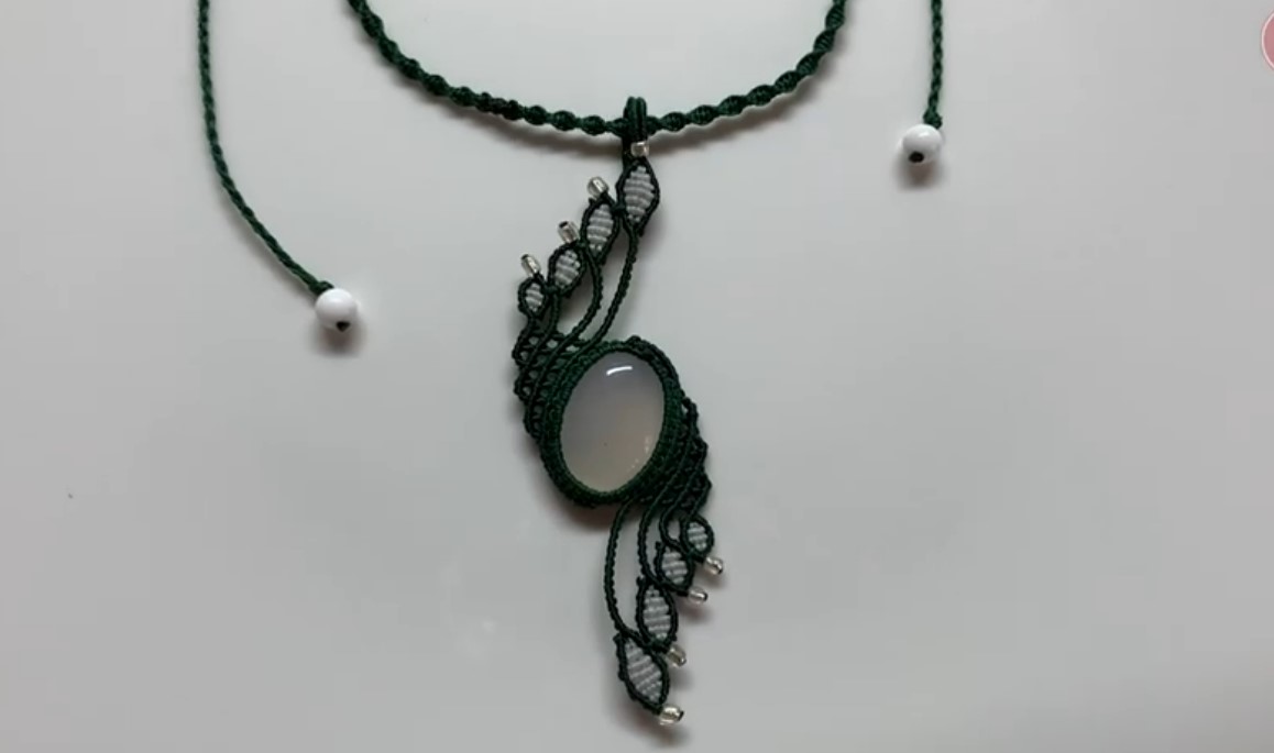 Macrame necklace tutorial: Pendant with a Gemstone and Beads | Macrame TiTa
