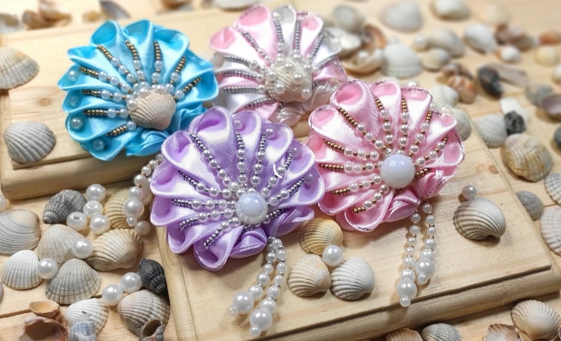 Нежная брошь ракушка из атласных лент ? Как сделать брошь своими руками.