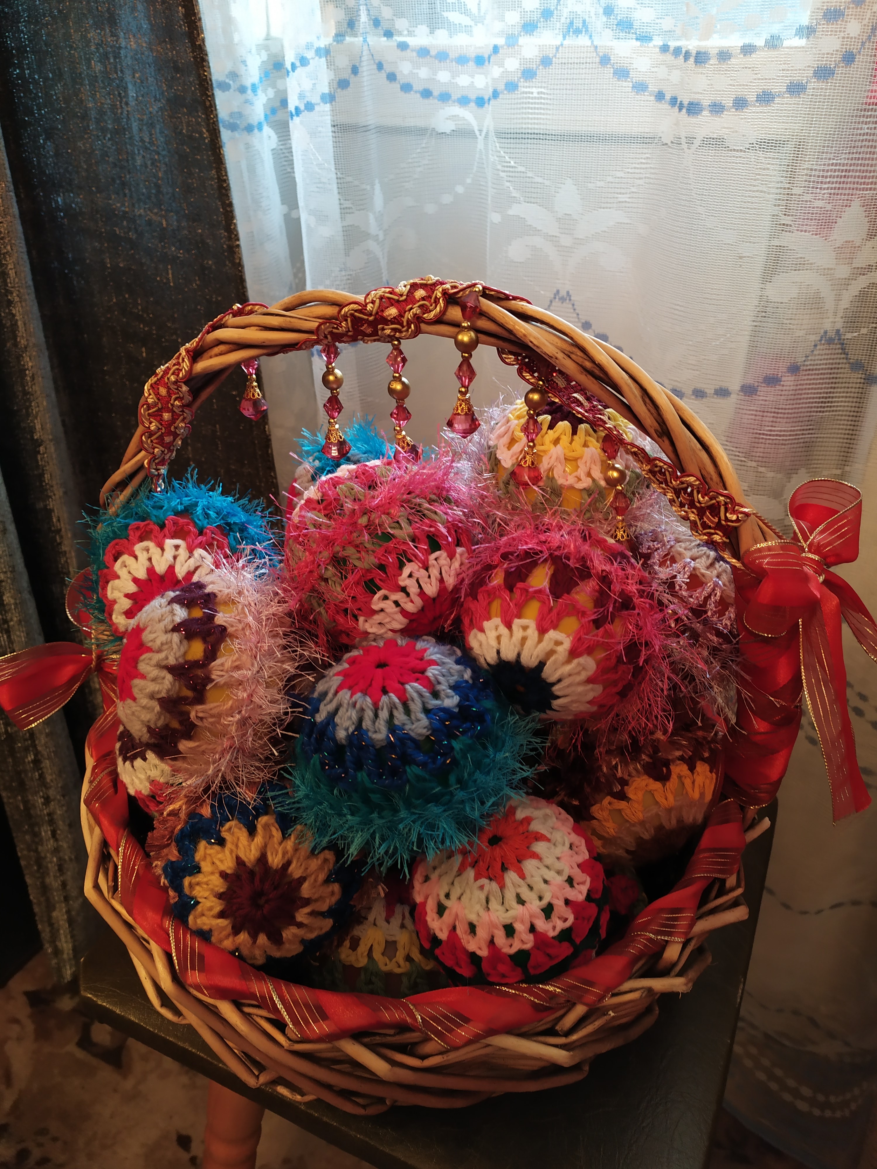 Марина, чудесный ренессанс у Вас случился!!! Шарики даже просто в корзине смотрятся декоративно, а если ими елочку украсить или комнату — будет просто эксклюзив!!!