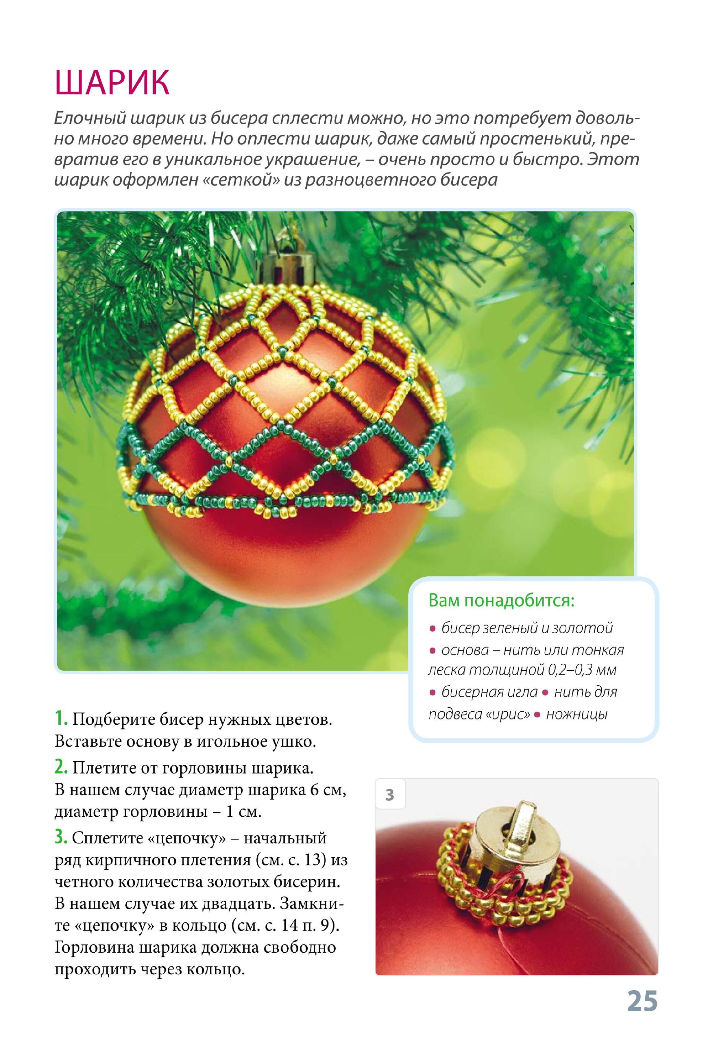 Бисер идеально подходит для создания новогодних украшений: елочные игрушки и поделки из ярких бусинок создают настоящий праздник! Плести по инструкциям из книги довольно просто, а материал доступен каждому.