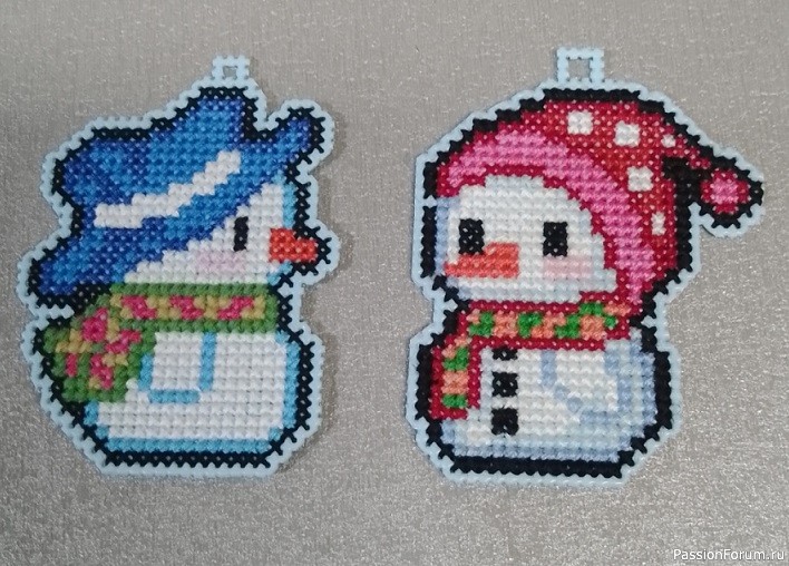Снеговушка стала скучать и мне пришлось ей вышить друга снеговика.