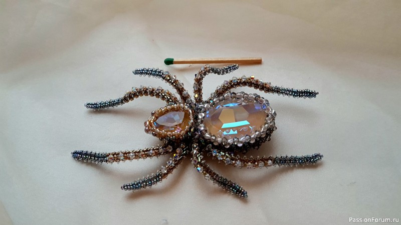 Размер тела паучка 5,5 см. Лапки из бисера делика и бисер √15 миюки.