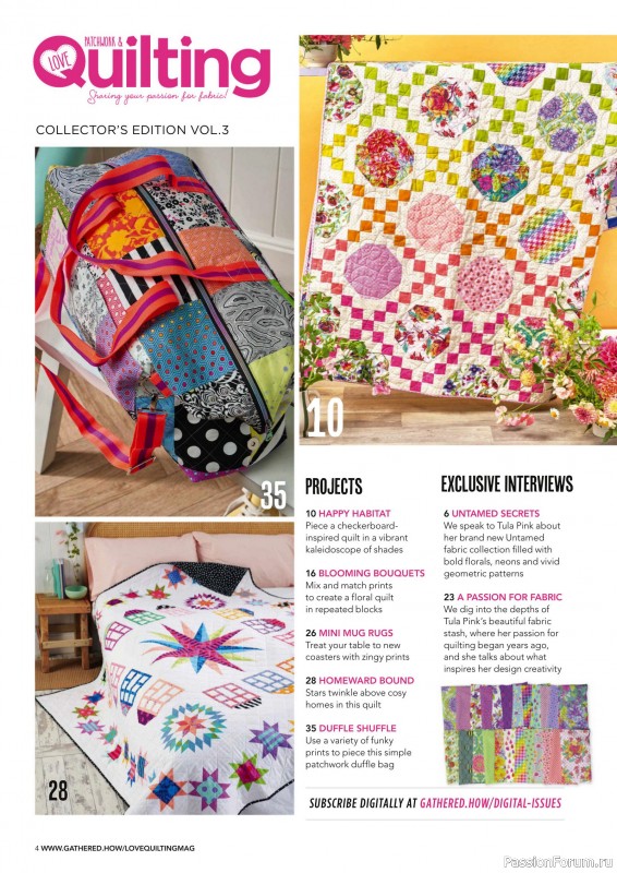 Журнал по пэчворку и квилтингу. В каждом выпуске новые, современные проекты для изготовления одеял, подушек и разных вещей для создания комфорта и уюта в доме.