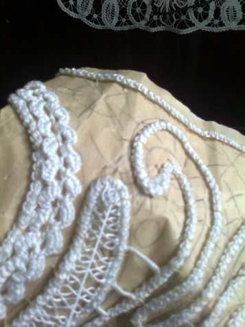 Вот где место разыграться фантазии! Очень красиво и креативно я бы сказала! Вроде суть поняла, теперь применю в вышивке гладью, а может и тоже шнурочек попробую вместе с вышивкой. шнурок как основа, а там что хочешь то и вышивай. Мне такое очень нравится! можно создавать собственные кружева, а то магазинные и дорого да и не стоят того, да и чаще всего синтетика. А если и платья, то мне то длина короткая, то без рукав, либо крылышки, а они чаще всего не удобны, а то как то приглянулась к платью, а оно так страшно и грубо пошито, само кружево порезано и пошито странно так, одни швы, а если и подклад менять, то намучишься, потому что пришито к подкладу… так что надеюсь что с вашей подсказкой теперь у меня получится моя задумка! Благодарю вас! =)
