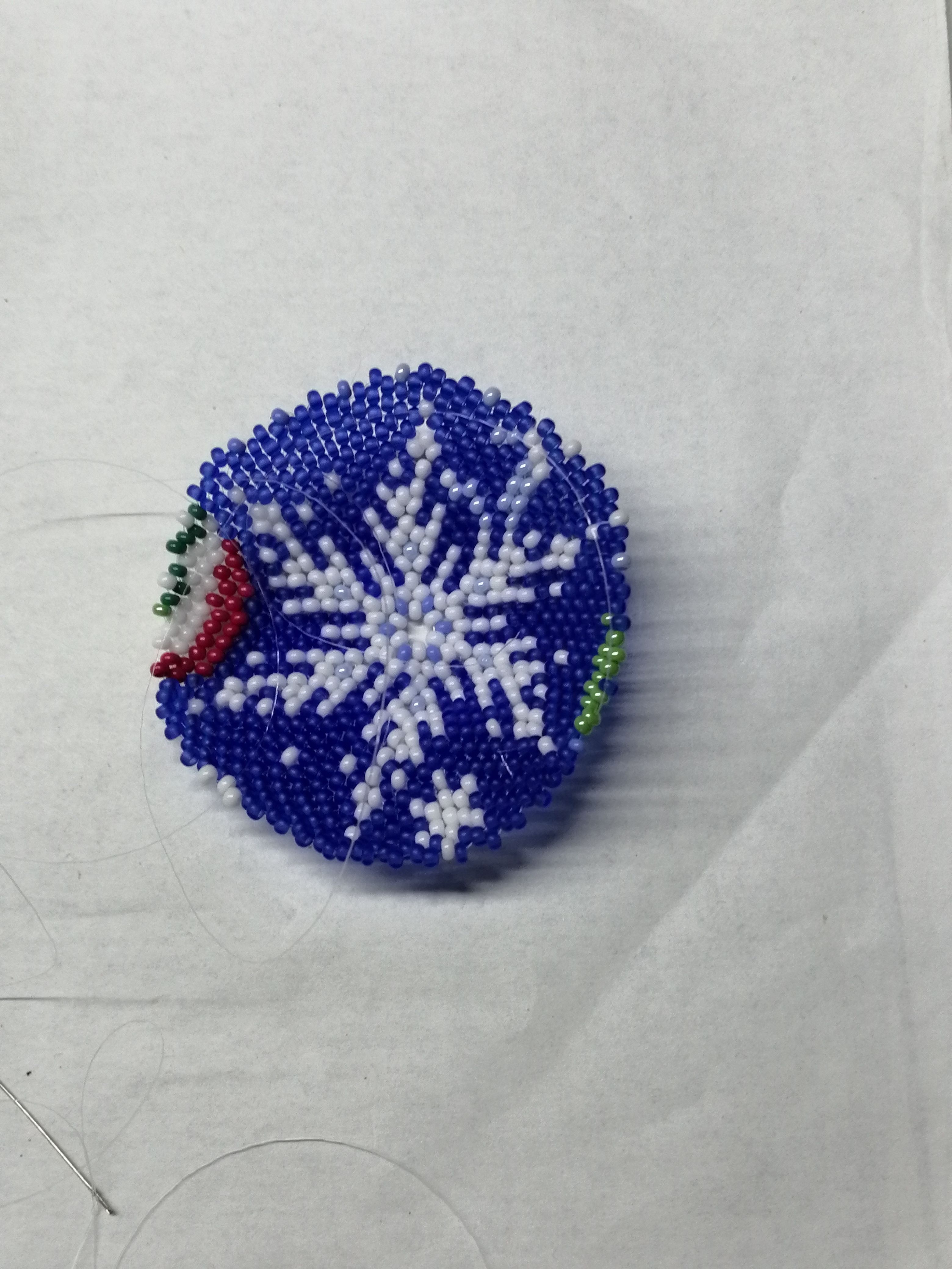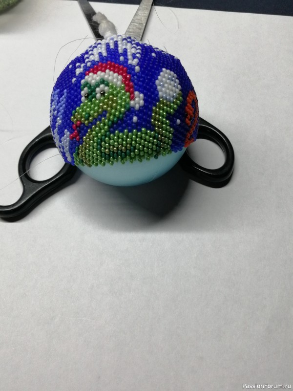 Создание этого шарика-символа года,это процесс творчества,в который я вложила частичку своей души . Шар выполнен из чешского бисера 10