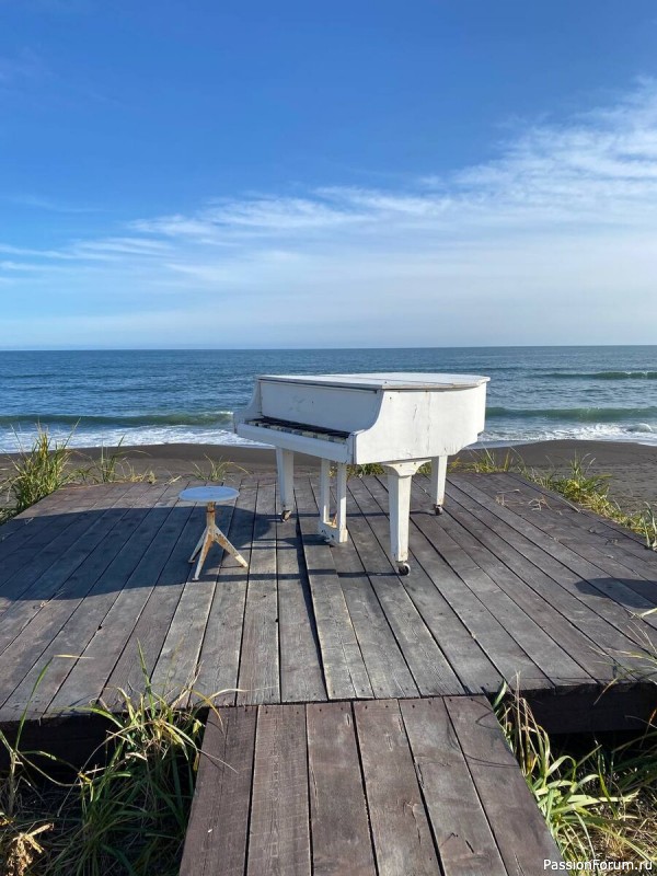На пляже есть места, оборудованные для отдыха, фотосессий. Например, на фотографиях ниже: площадка с роялем, на песочке - пианино, даже старинная телефонная будка есть.