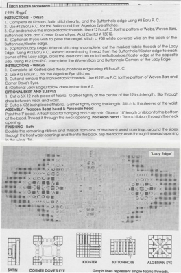Она мне так понравилась, что я потеряла покой. Она не выходила у меня из головы. Я постоянно заглядывала в наш топик, чтобы в очередной раз полюбоваться ею. И Натка-Трям оказалась неравнодушной к этой красавице, и обещала мне даже помочь в создании схемы Ангелочка. Я скопировала себе в папку на компьютере эту картинку с Ангелом и начала изучать, разбирать схему вышивки платья Ангела. Всё было понятно, кроме каких-то узелков на перевитых бридах . Я подумала, что эти шишечки напоминают "пико" при вязании крючком. И не ошиблась, порылась в интернете и нашла, как вышивать "пико". Главным было разобраться в ажурном узоре! А остальное не представляло трудности! Платье кроим как солнце-клёш.