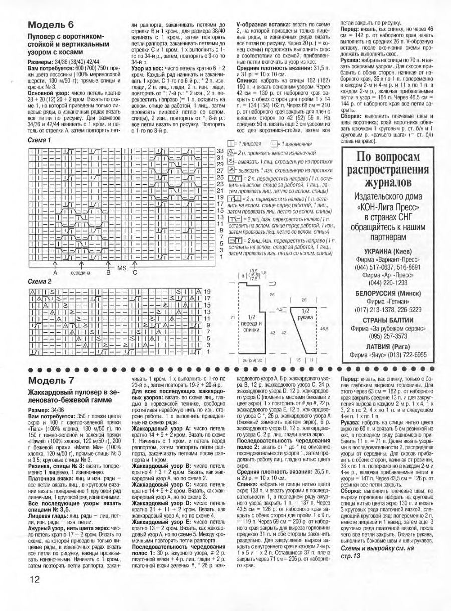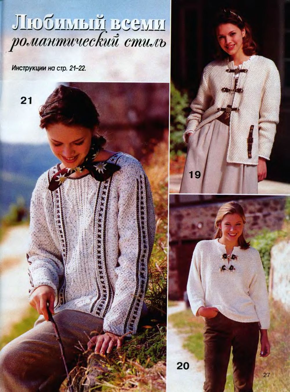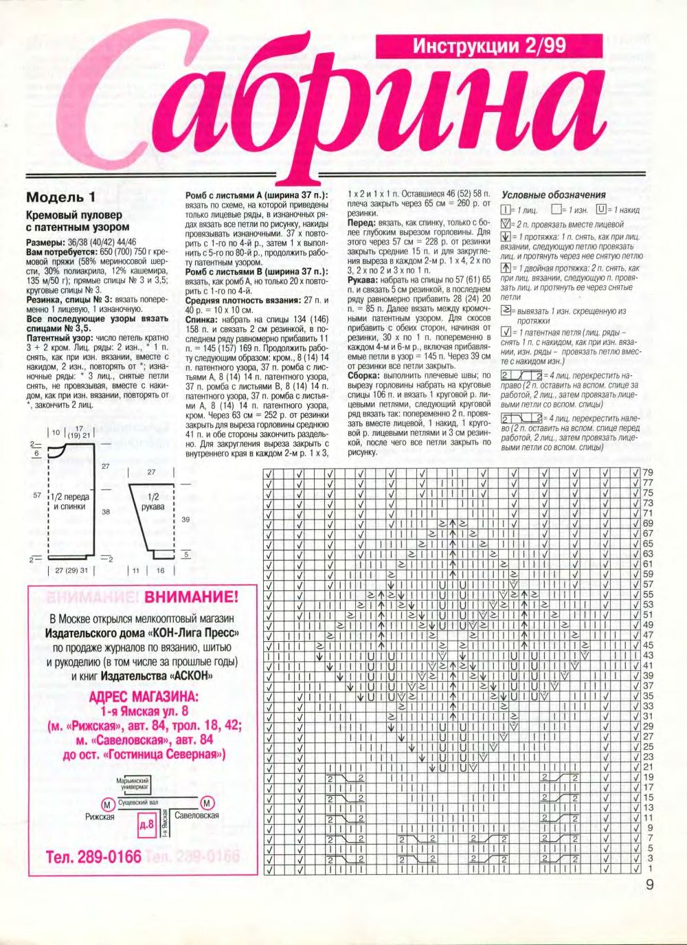 Журнал Sabrina - самый популярный в Европе журнал по вязанию. Все модели - женские, мужские, детские - всегда на пике моды, подходят для людей любого возраста и на все случаи жизни. В каждом номере около 30 моделей с инструкциями, схемами и выкройками. Широко представлена молодежная тема, отдельная тема журнала - экстравагантные модели для тех, кто это любит. В каждом номере наряду с моделями, связанными на спицах, представлены и вещи, связанные крючком.