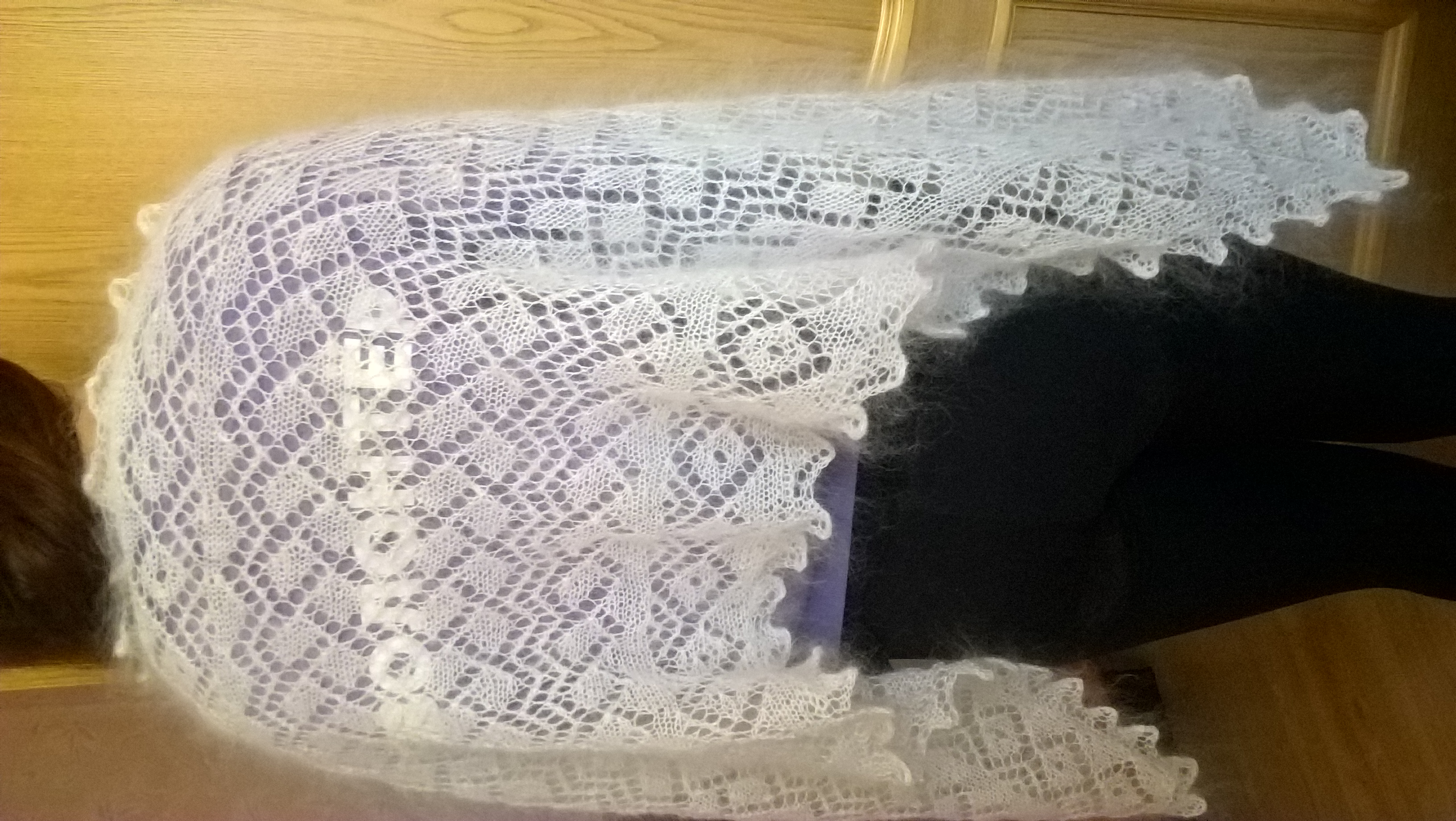Продам палантин ажурный из белого козьего пуха.Это белое облачко будет согревать вас в зимние холода.Размер 160х80см.Цена 3000руб.