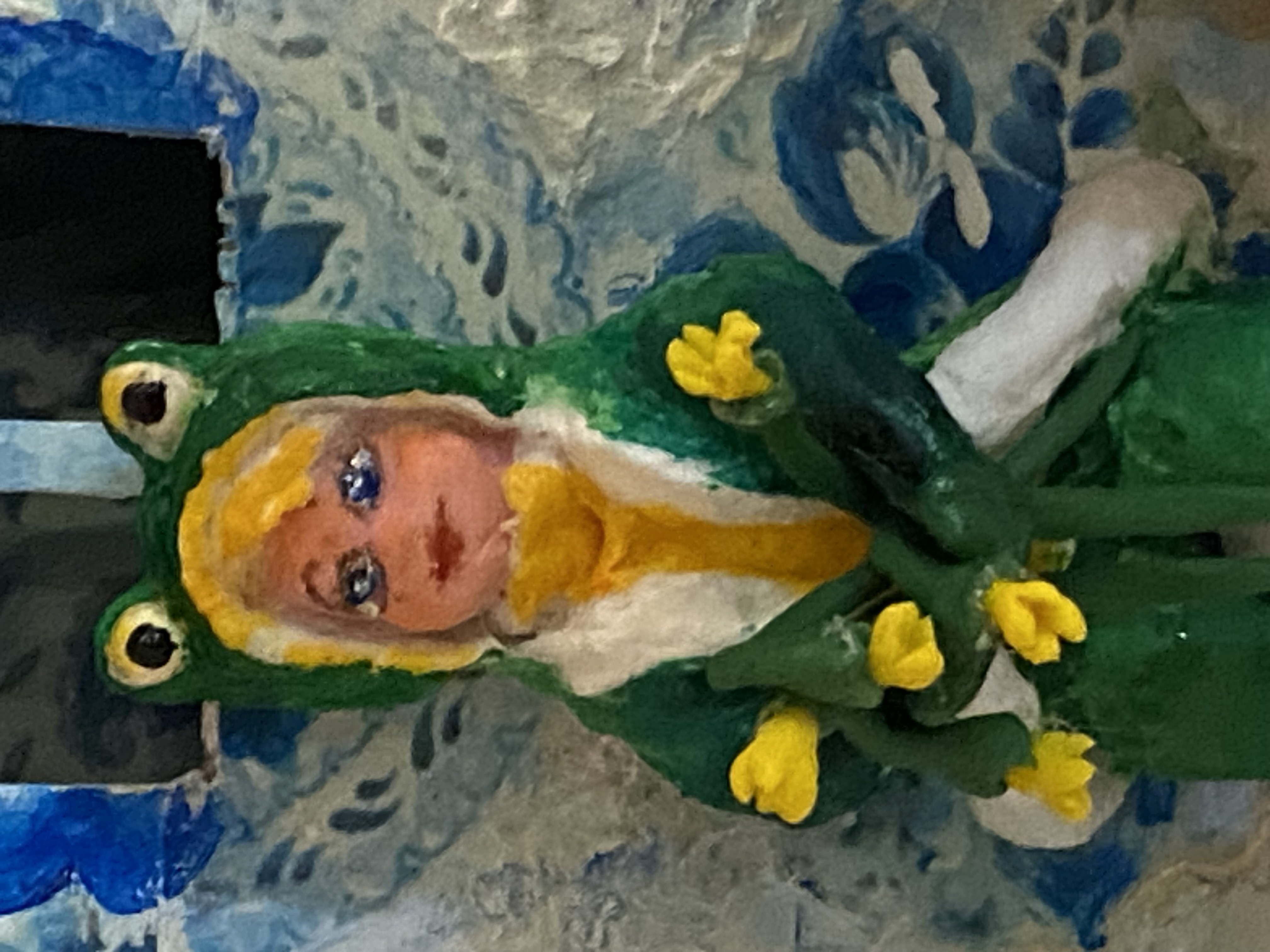 Людочка, однозначно уже освоила маскарадные костюмы, отличное пополнение компании)) Лягушонок чудесный, воспоминания о детстве))