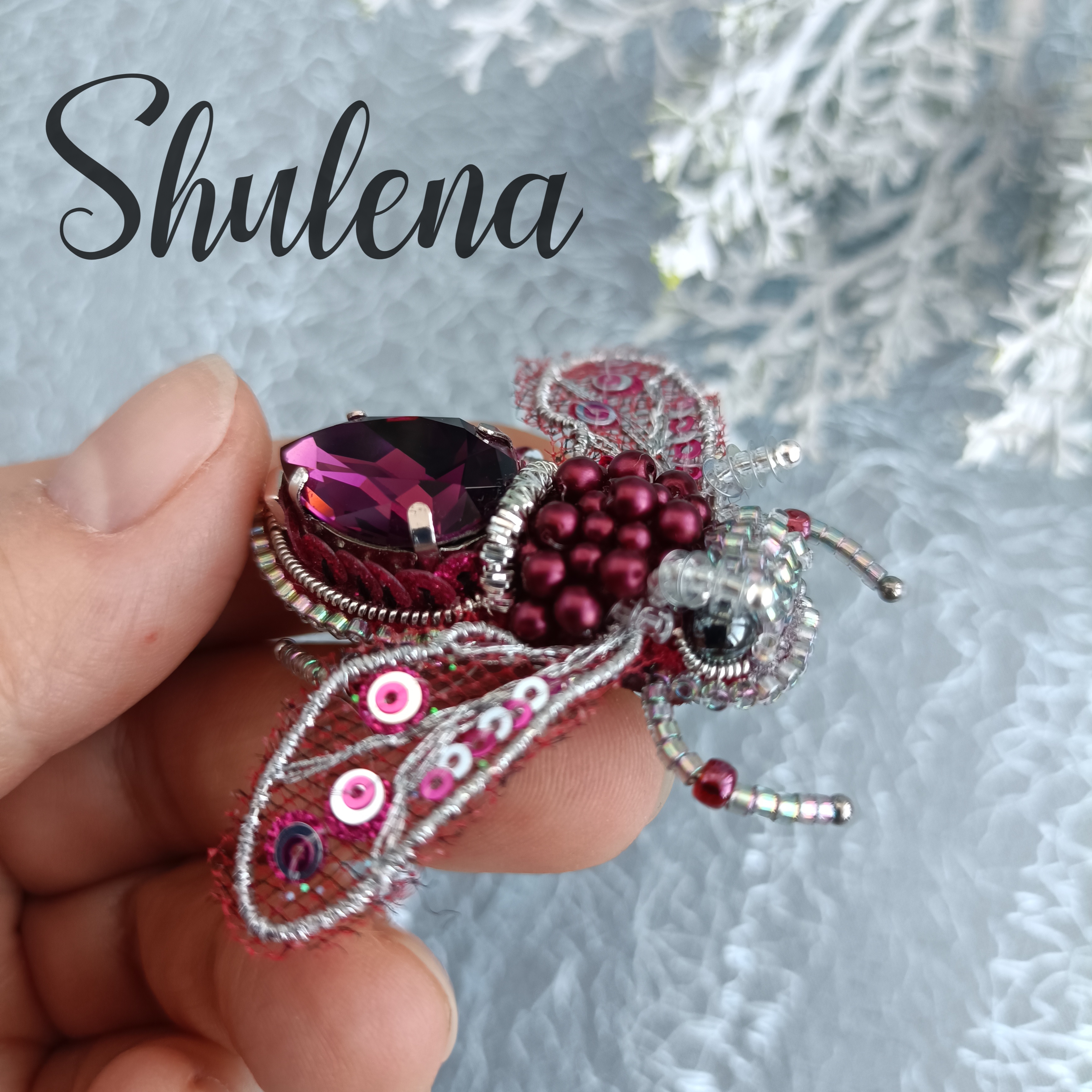 В работе использовала кристалл К9, японский бисер, жемчуг, пайетки. Изнанка -натуральная замша.