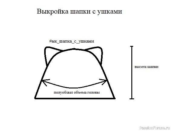Длина шапки составляет - длина до надбровной части (ГШ) + 3-4см загиб.