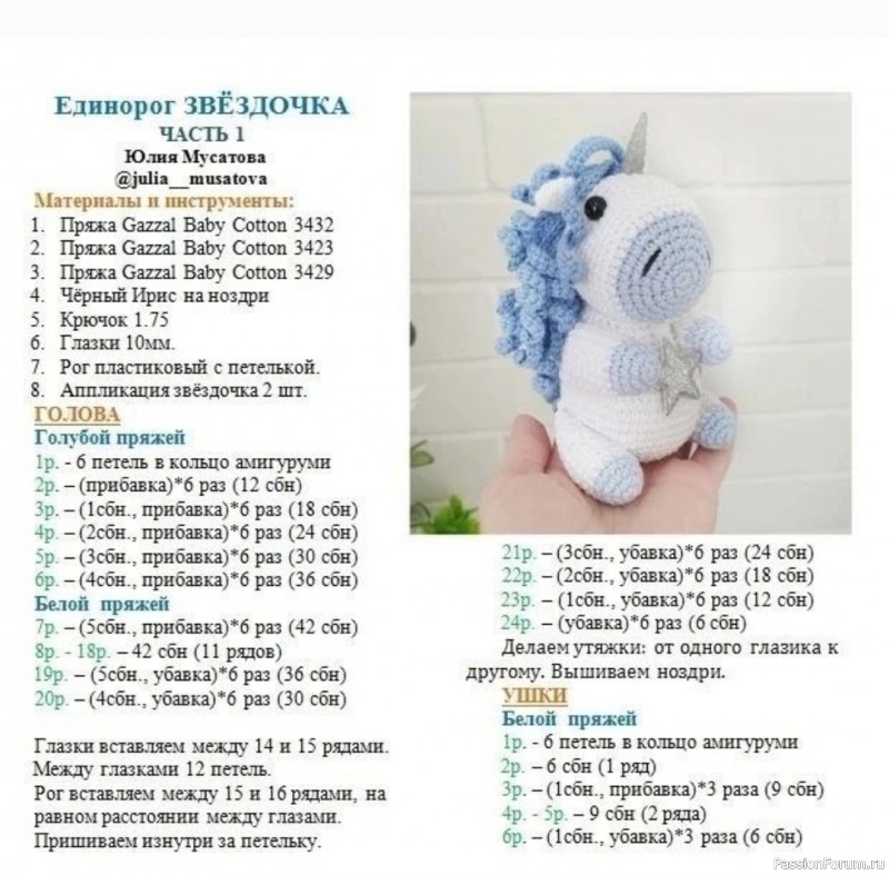 Единорог Звездочка крючком. МК
