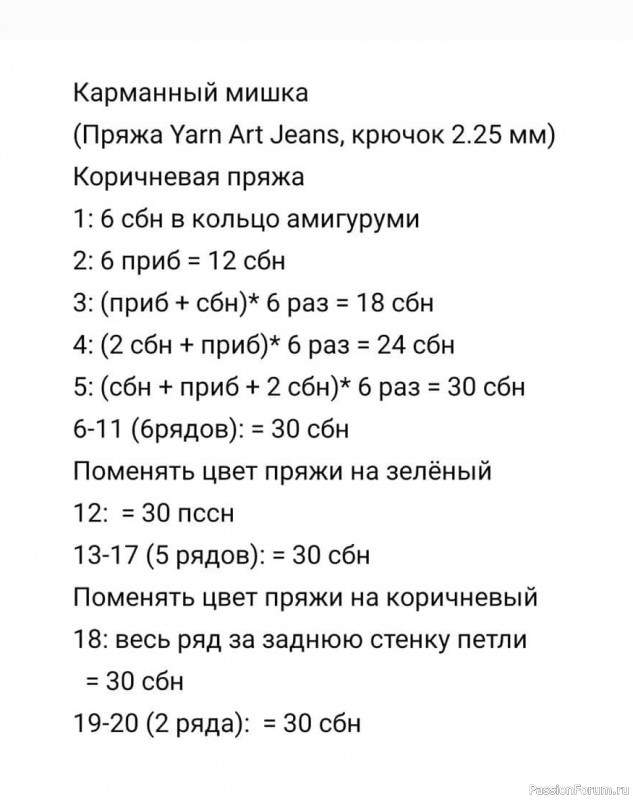 Карманный мишка крючком. МК