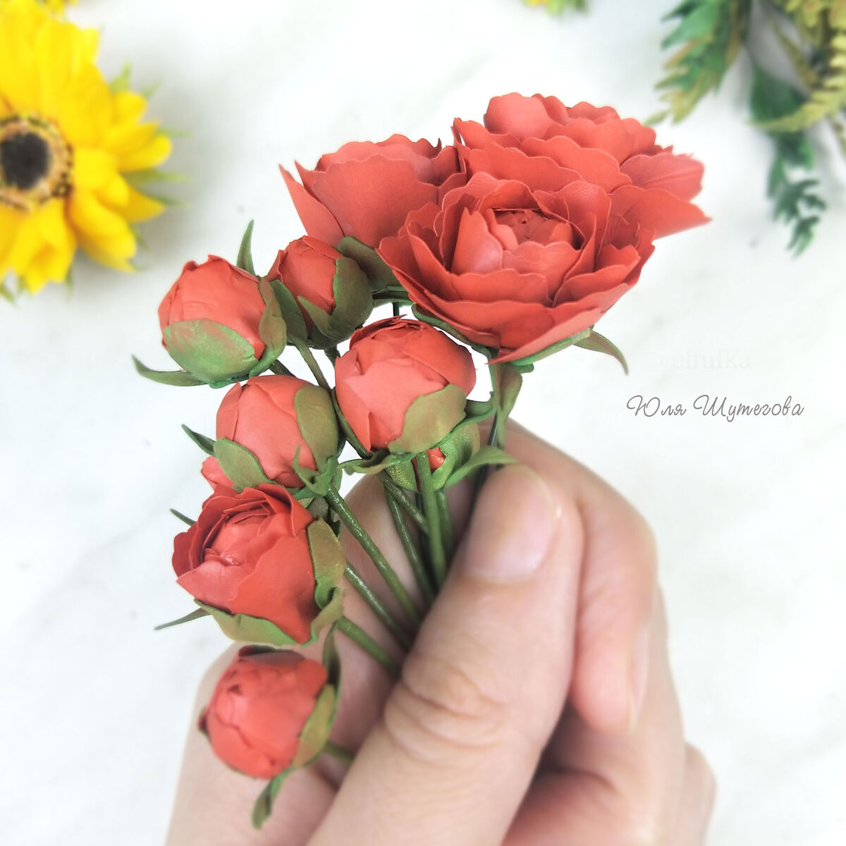 Добавила чашелистики и оформила стебельки тейп-лентой.
