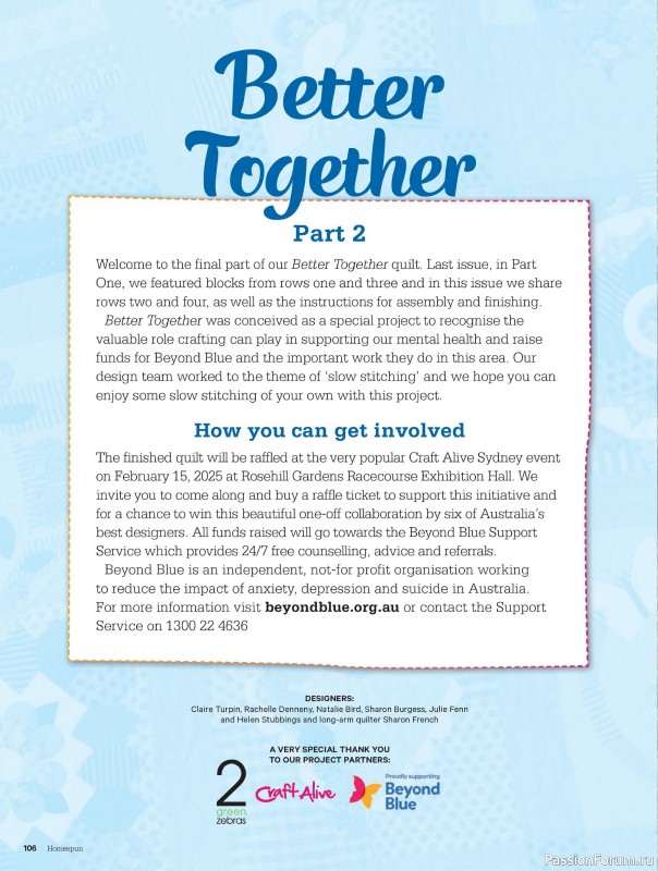 Коллекция проектов для рукодельниц в журнале «Australian Homespun №218 2025»