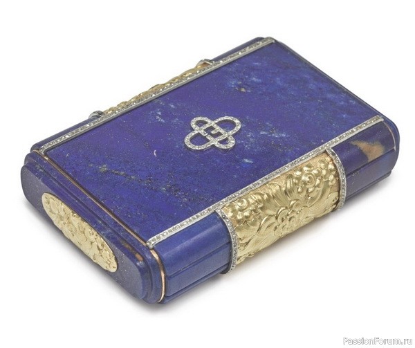 Портсигар из лазурита в оправе из золота с бриллиантами, длина 8,3 см, Strauss, Allard & Meyer, около 1930 г.