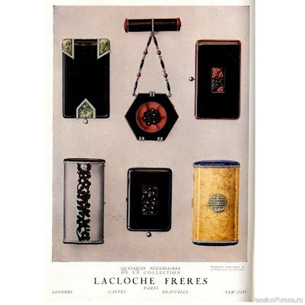 Реклама Lacloche в «Vogue» 1923 года с косметичками, изготовленными Straus Allard et Meyer.