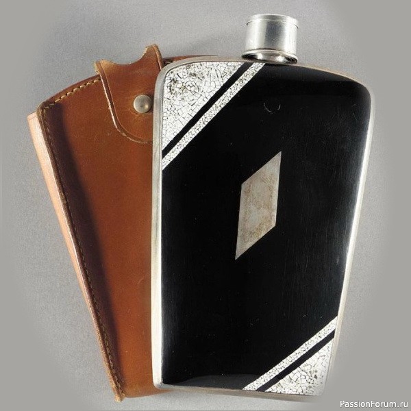Серебряная фляжка, декорированная лаком и яичной скорлупой, NAPIER, Франция, около 1930 г.