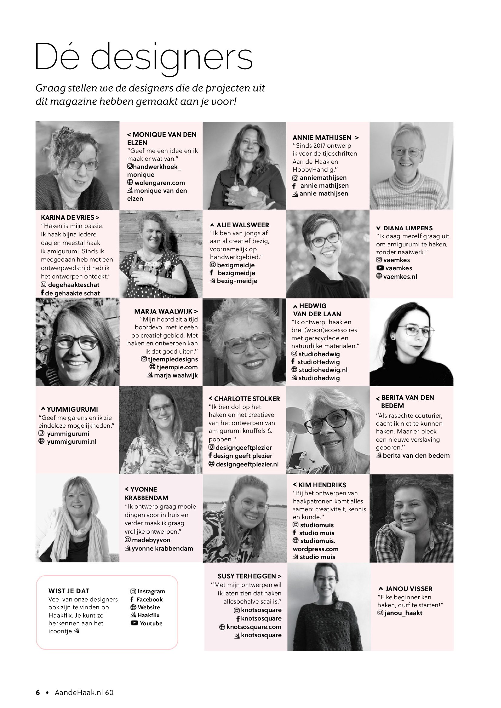 Aan de Haak - журнал о вязании из Нидерландов. Каждый выпуск содержит множество проектов по вязанию спицами и крючком как для самых опытных, так и для начинающих рукодельниц. Хотите ли вы вязать модный шарф или подушку или лучше освоить новую технику? Открывайте журнал и подключайтесь к работе!