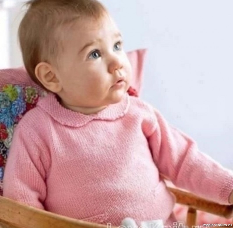 Акценты, которые сделаны при помощи жемчужного узора, превращают простой пуловер, связанный лицевой гладью, в очаровательную модель. Размеры: 62-92