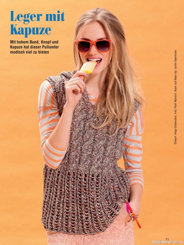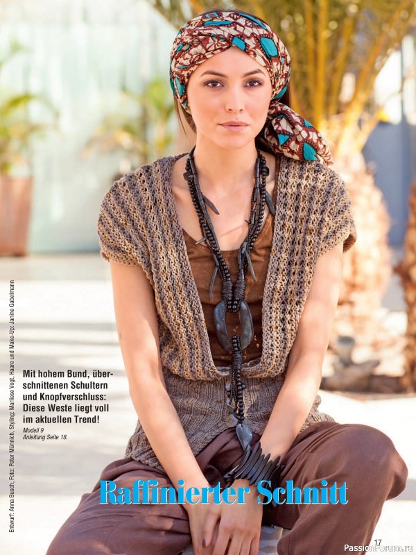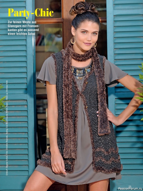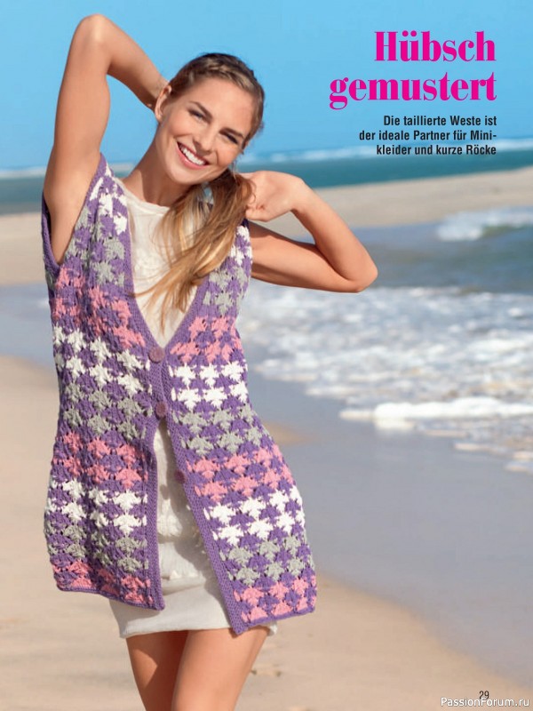 Журнал посвящён вязанию спицами женских моделей. В номере18 модных дизайнов жилетов, джемперов, пуловеров, кардиганов для весенне-летнего сезона.