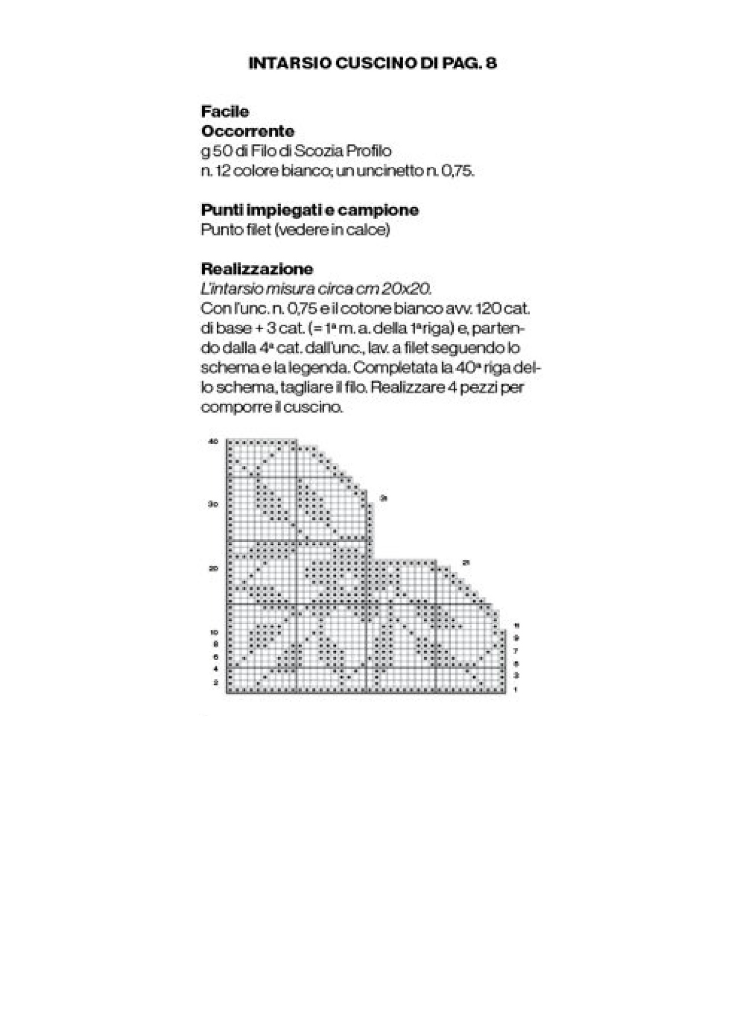 Итальянский журнал по вязанию крючком. В каждом номере проекты и идеи для создания уюта в вашем доме: занавески, бордюры, салфетки, кайма, связанные крючком в филейной технике. А также сумки, пледы, подушки, коврики, прихватки и многое другое.