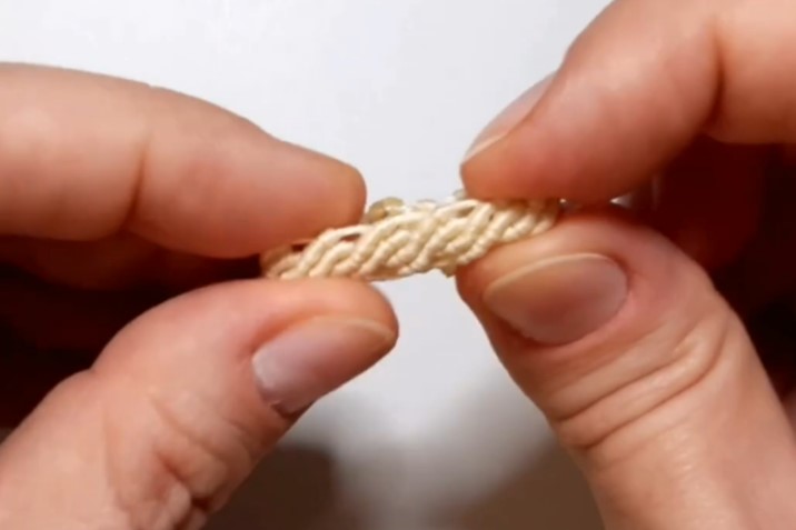 Предлагаю создать красивое кольцо из ниток. Украшение можно стирать и оно не потеряет свою привлекательность.