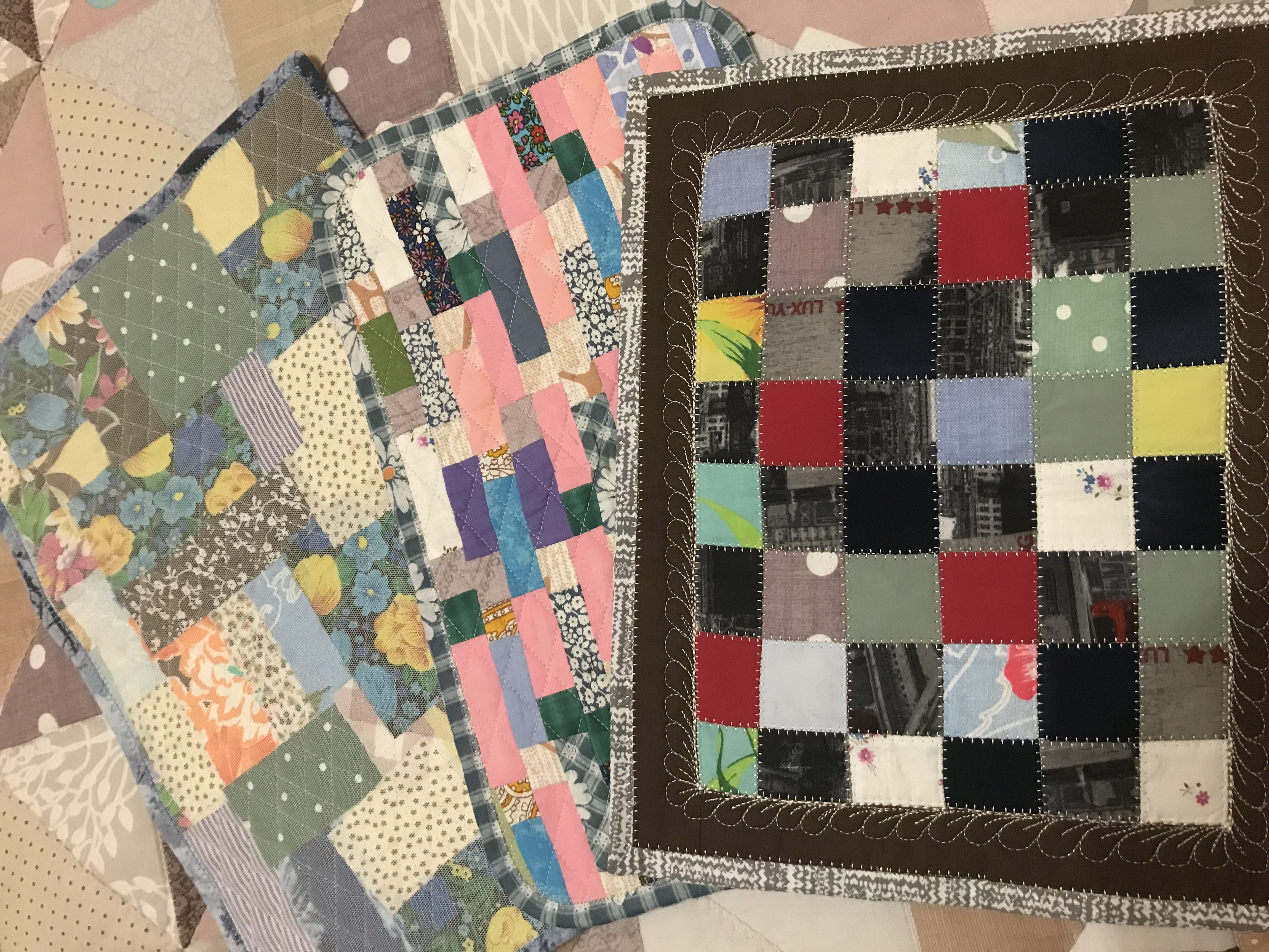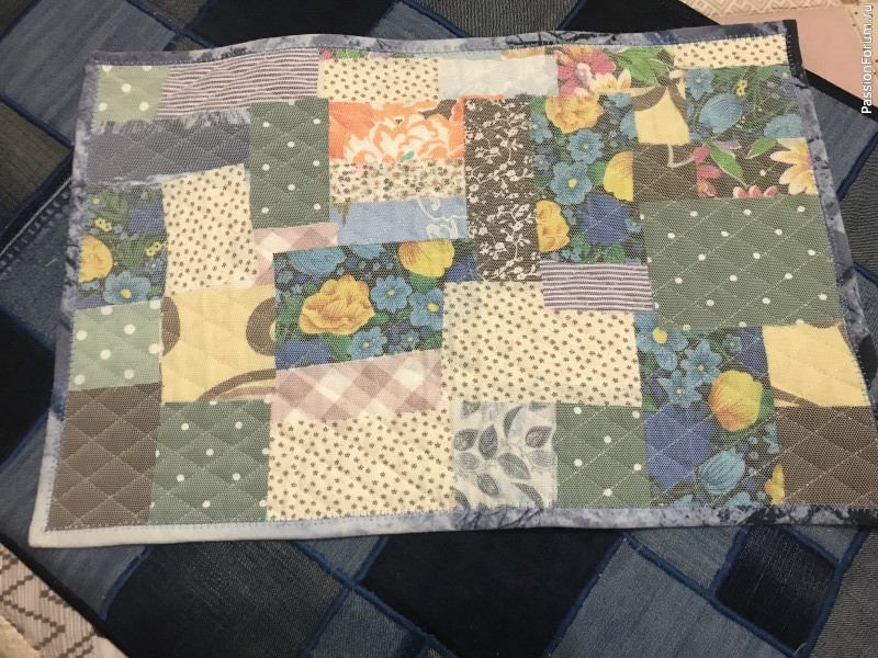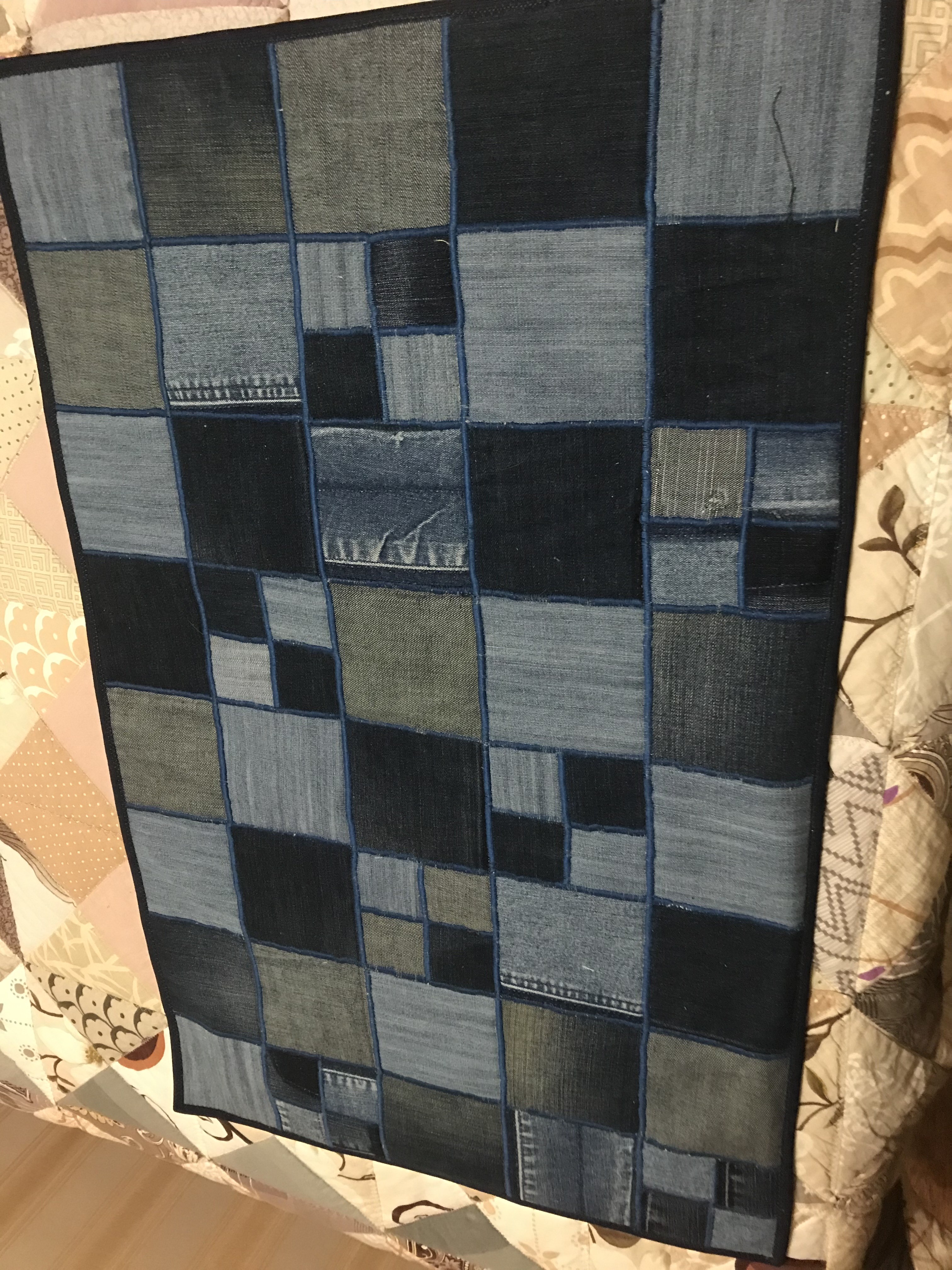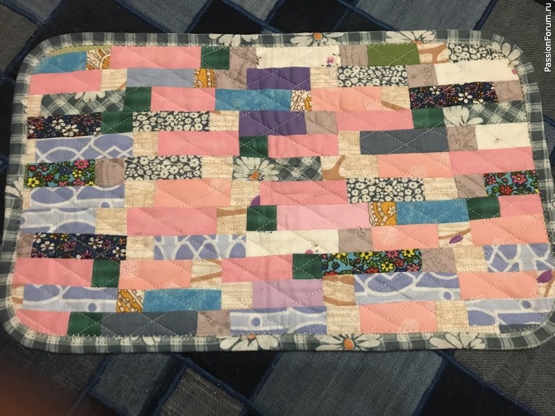Сшила прикроватный коврик из джинсы и три ланчмата для сушки посуды в технике лоскутного шитья из остатков от прошлых проектов