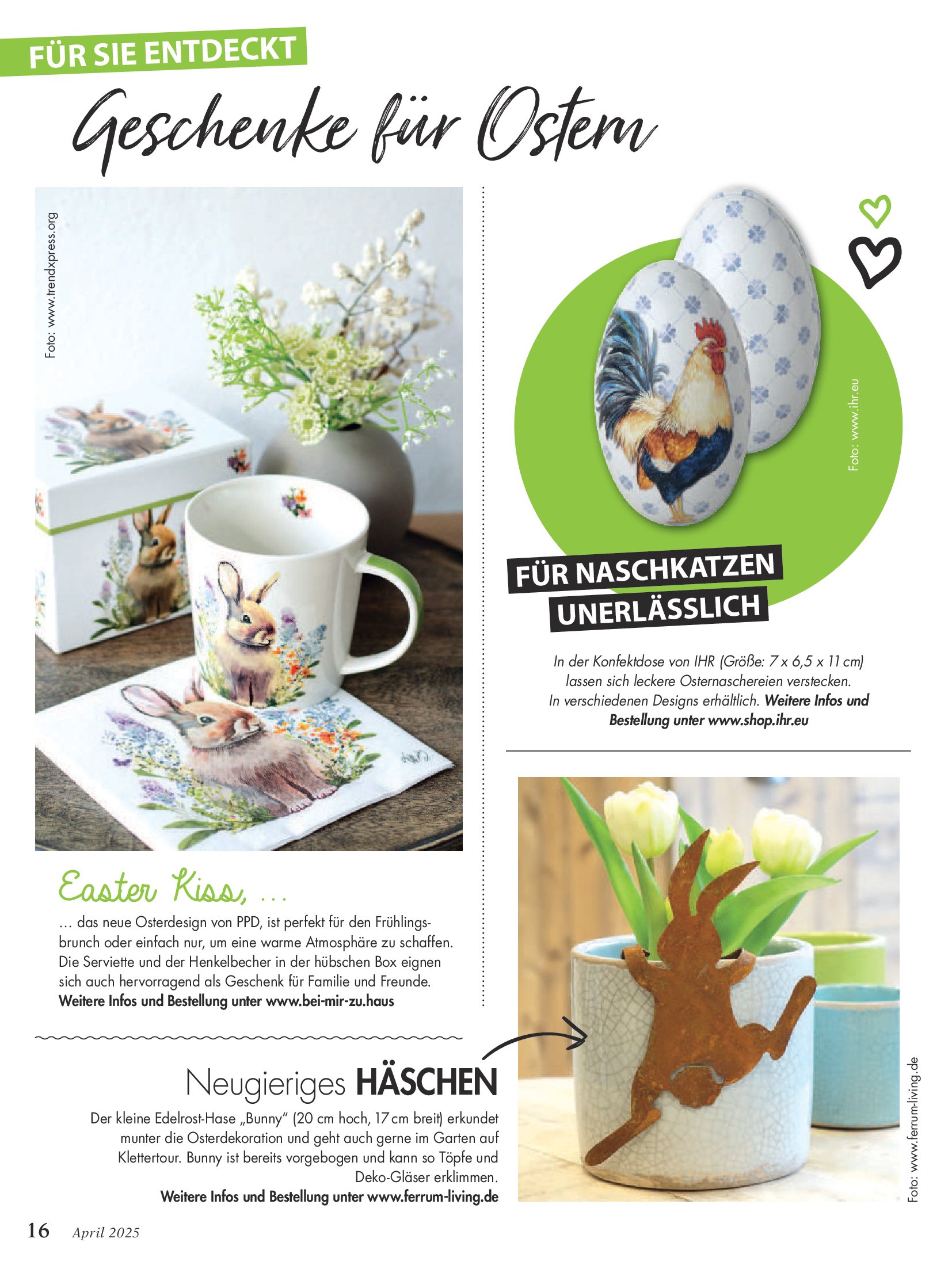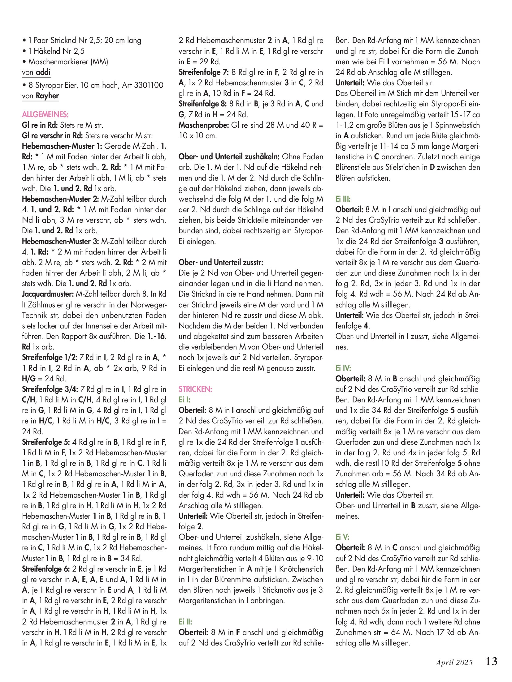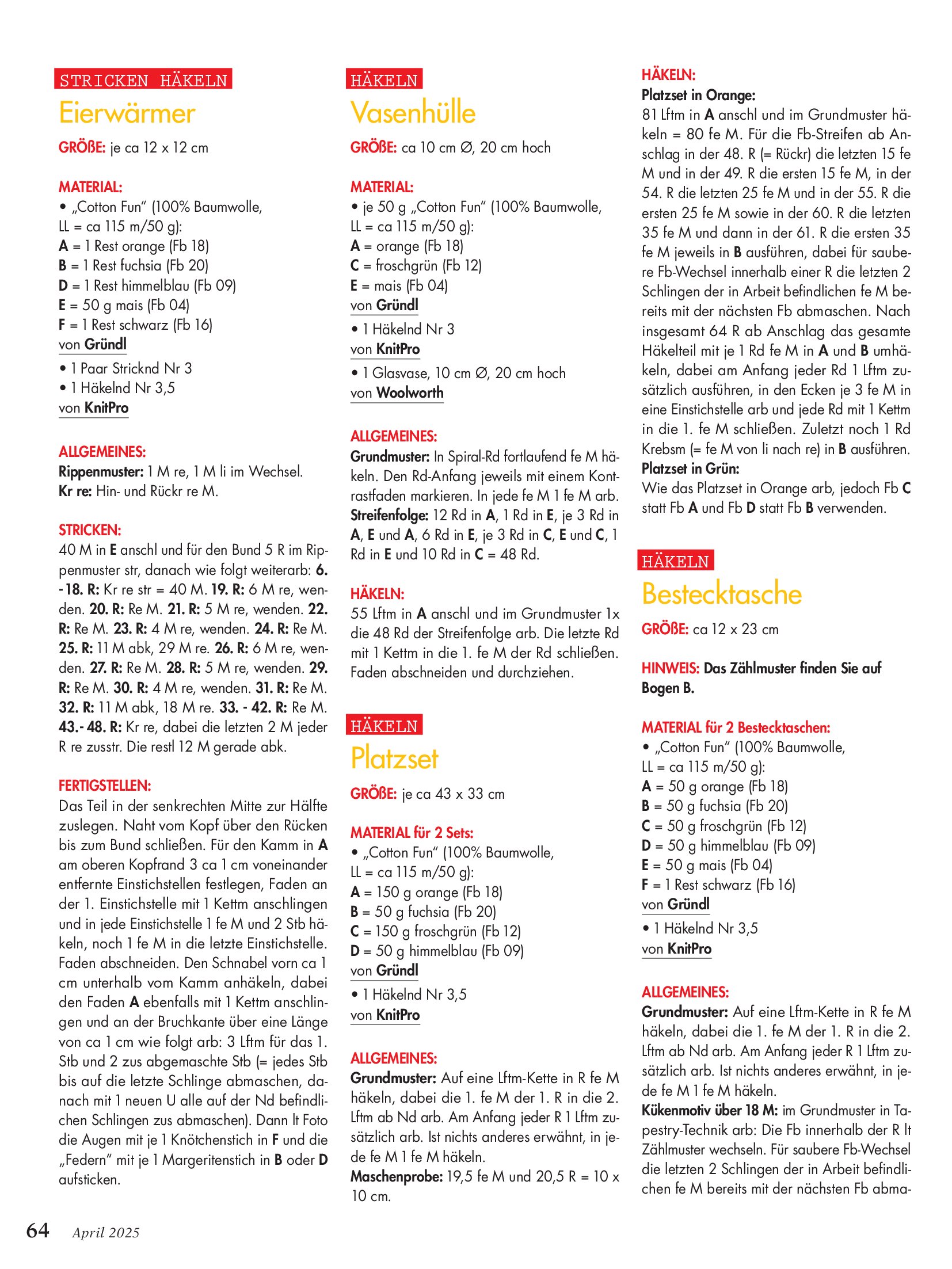 Популярный журнал по рукоделию на немецком языке. В каждом номере журнала собраны уникальные проекты, выполненные в разных техниках - вязание крючком, спицами, вышивка, украшения из бисера, пэчворк и другие.