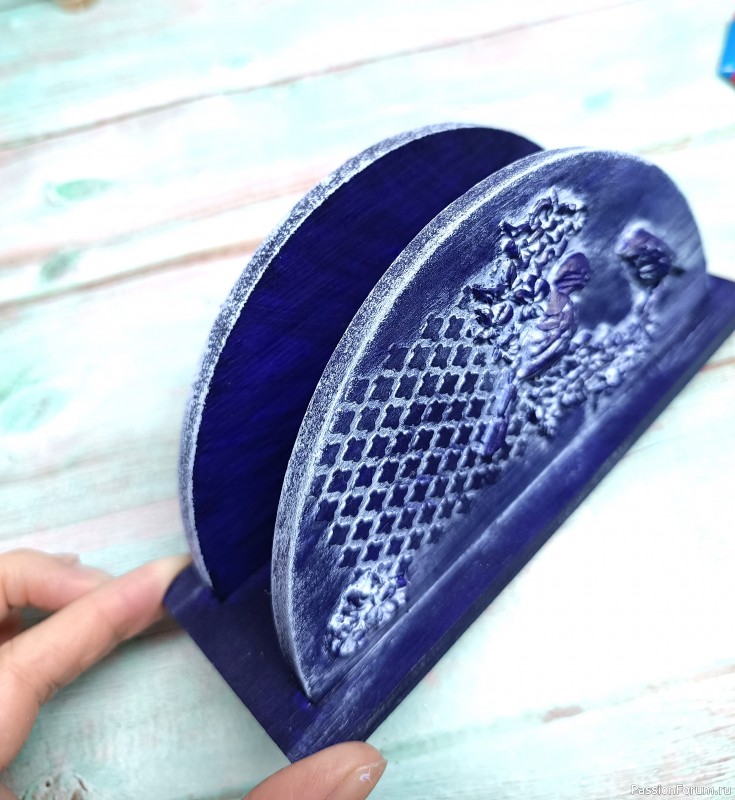 Окрашиваем салфетницу фиолетовым акрилом.
