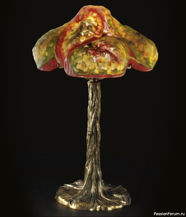 Лампа в форме яблони от «Pairpoint», стекло с обратной росписью, бронза, около 1910 г.