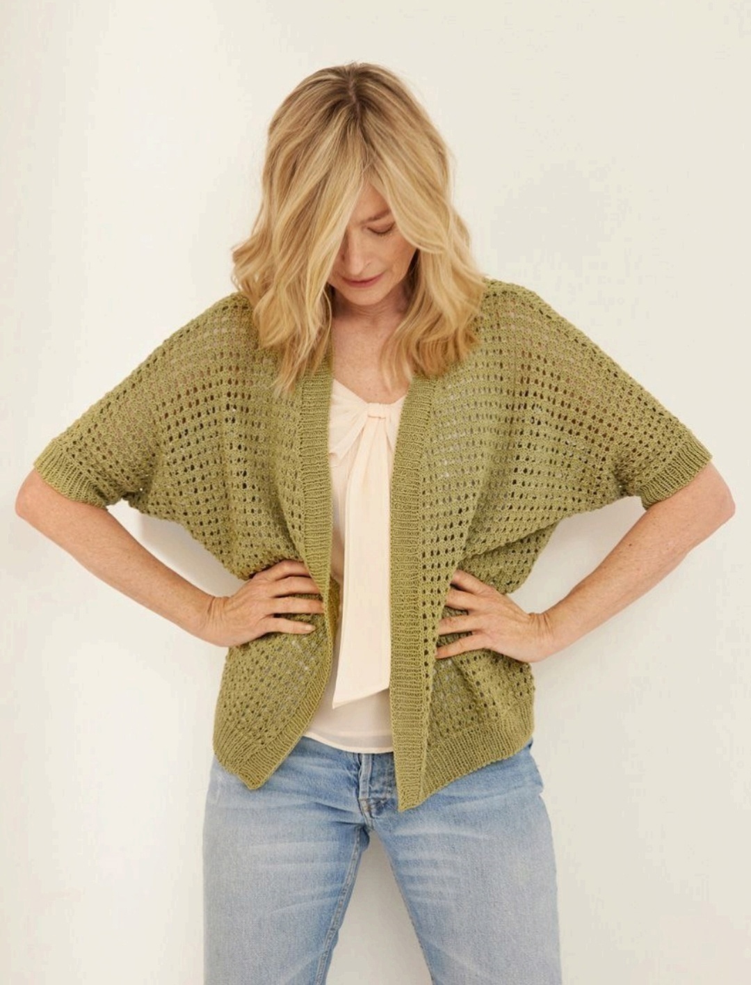 Для вязания жакета необходима пряжа с составом: хлопок, лен (можно с добавлением вискозы), метраж 120м/50г, спицы круговые № 3,5 (для резинки) и № 4,0 (для основного полотна).⠀
