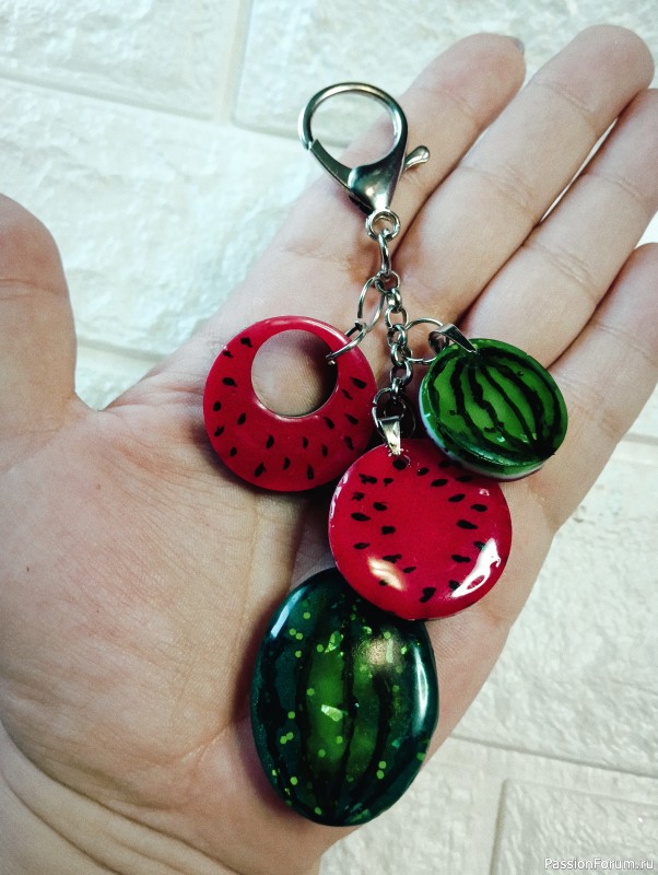 А это брелок, арбузики. Заливала в несколько этапов,послойно.