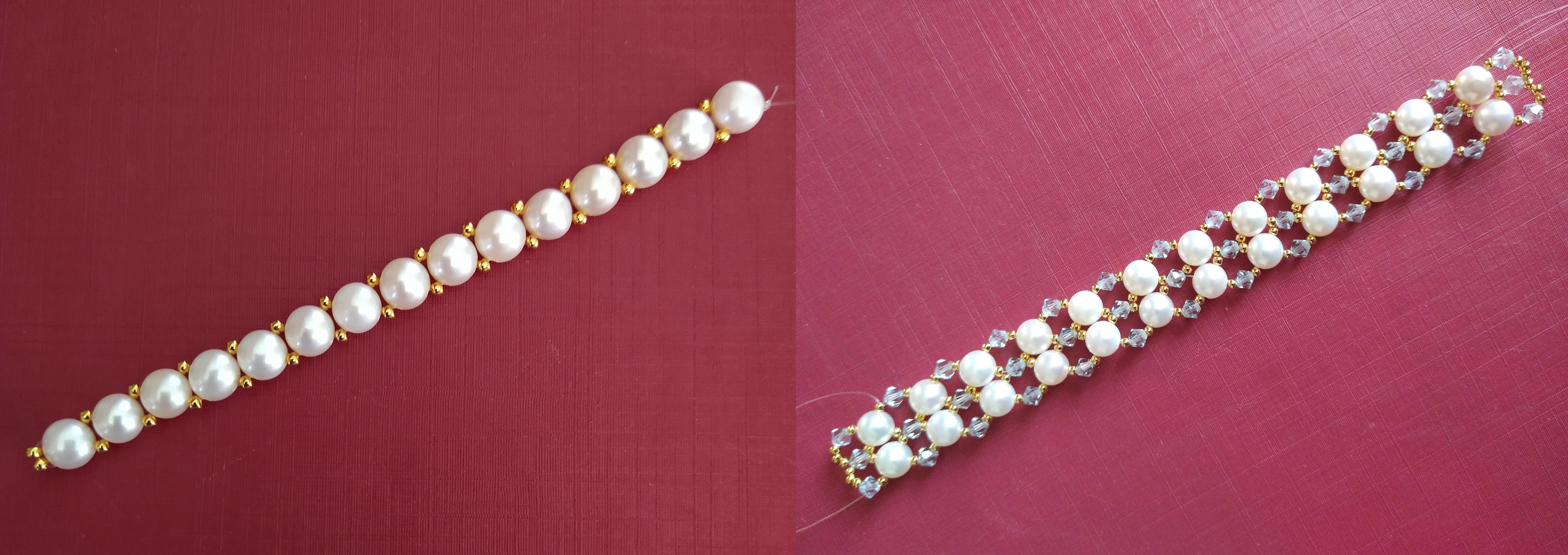 Попробовала несколько вариантов, остановилась на сочетании жемчуга с биконусами.