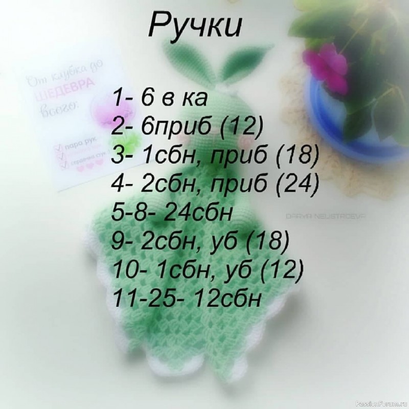 4. Щечки. 7сбн в ка, затем 7 прибавок, итого 14сбн.