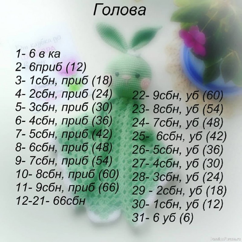 1.Голова. После того как закончили вязание, отверстие стянуть с помощью иглы. Глазки расположены между 15-16 рядами, расстояние между глазками 10сбн.