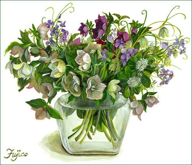 Акварели японской художницы Hashimoto Fujico легкие, воздушные и очень реалистичные. Морозник розовый взят за основу для этой вышивальной схемы.