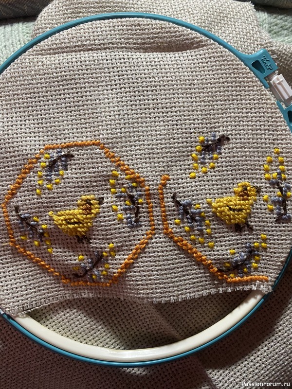 Другие — это курочки из бязи, тонированные кофе, шила года два назад, тоже сажаю их в корзиночки с яйцами пасхальными. Еще заканчиваю пасхальную шкатулку с нуля. Надеюсь, успею!