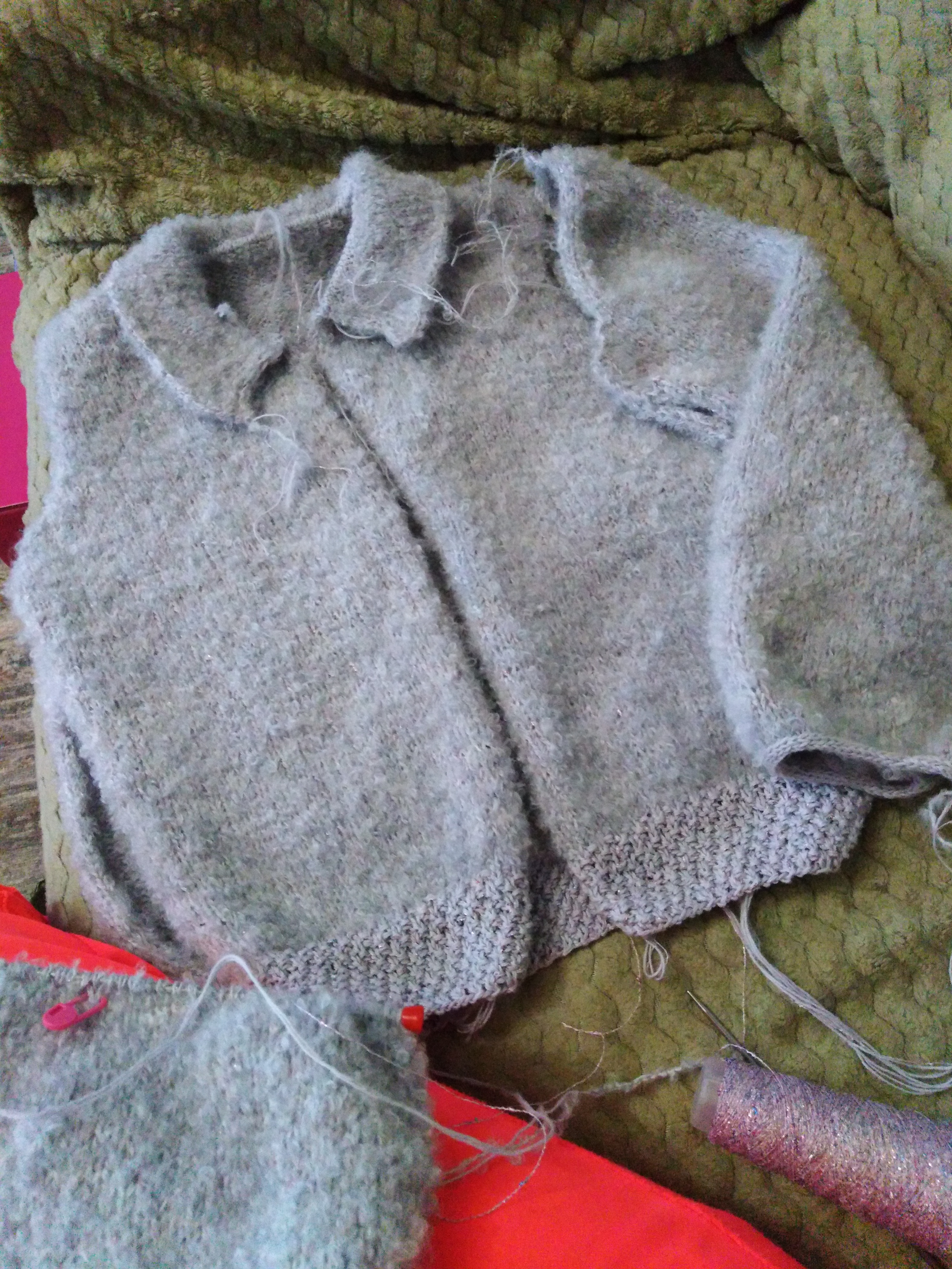 Не большими шагами кофточка для внучки растёт. Пока не могу решить как сделать планки для застежки.