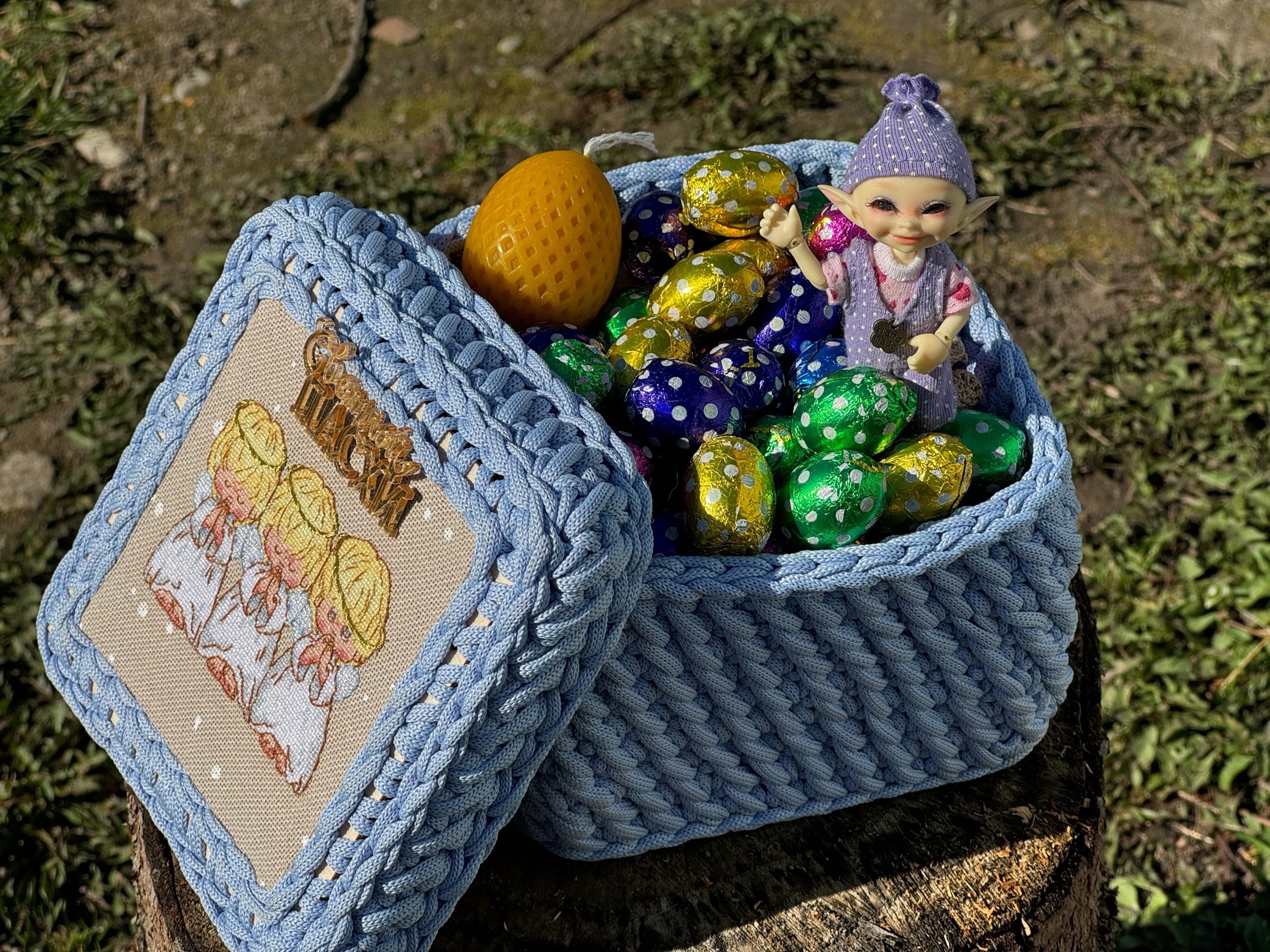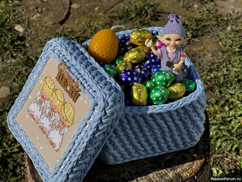 Красивая шкатулка-коробочка, а какой вязкой вязалась?
