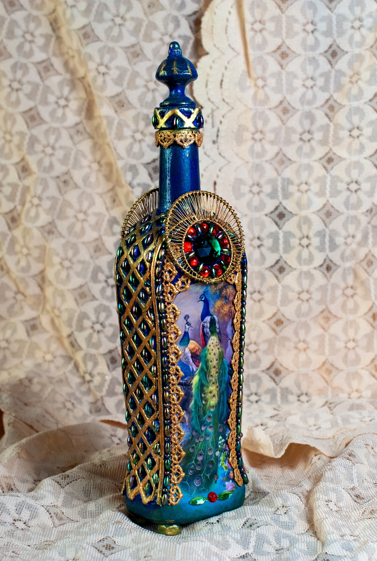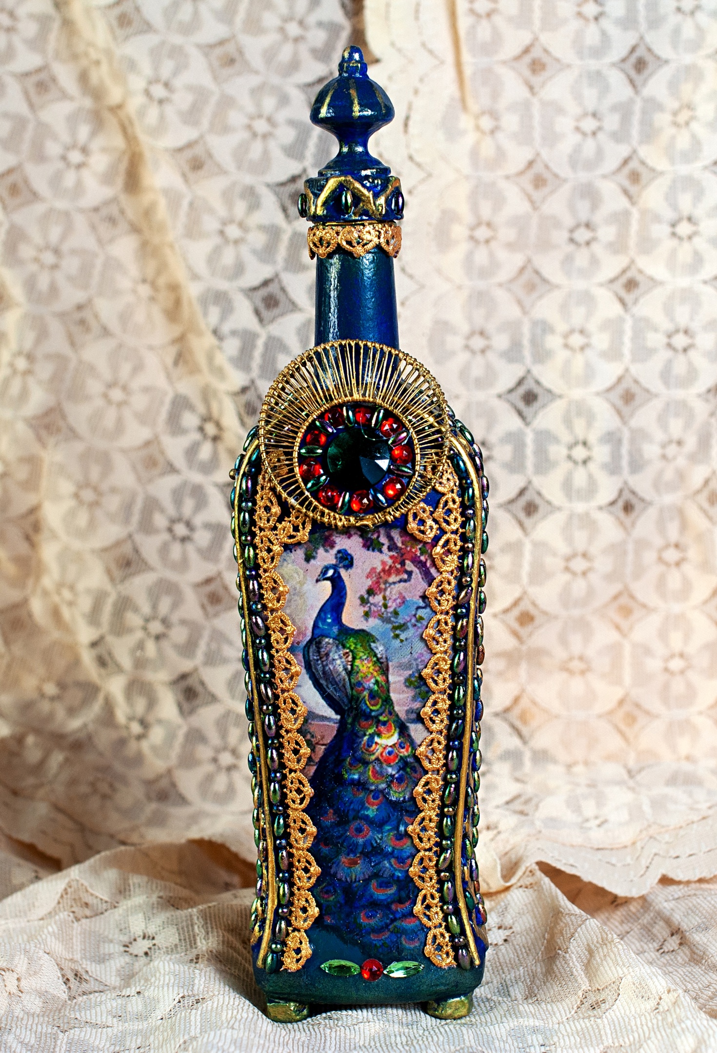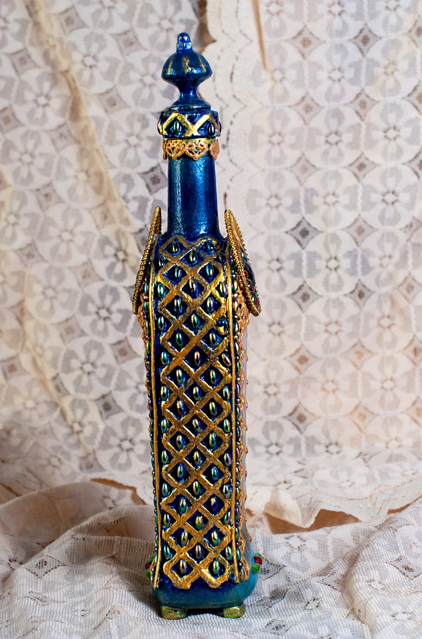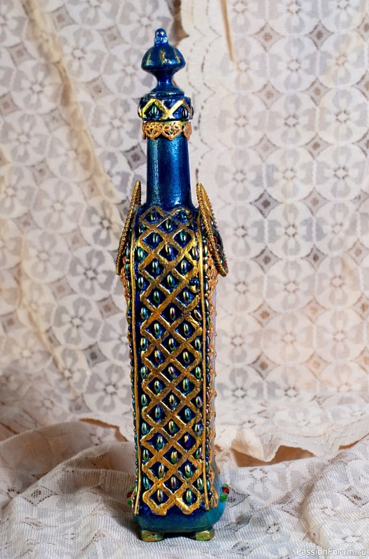 Мой выбор пал на создание очередной бутылочки, но с хорошо выдержанным восточном стиле, тут не стояла задача чётко следовать определённого направления. В результате моих трудов получилась вот такая восточная бутылочка Сад Султана.